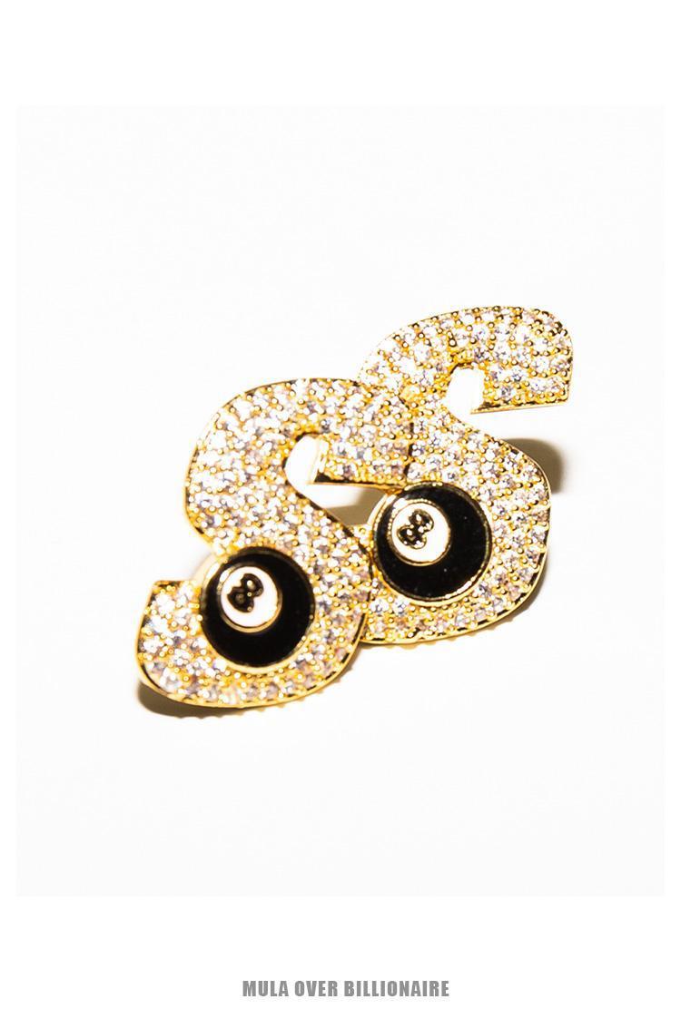 새로운 2 색 문자 당구 로고 전체 다이아몬드 성격 귀걸이 한 쌍