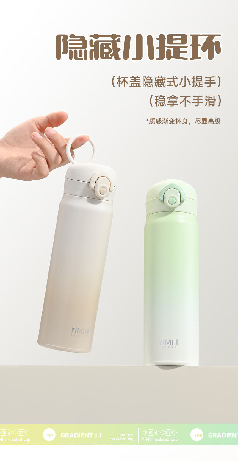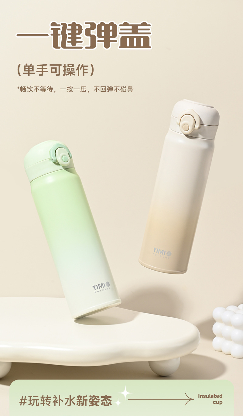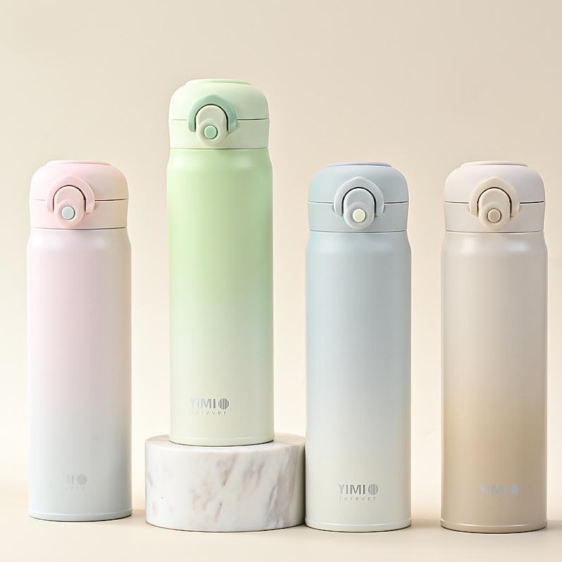 새로운 크리스탈 컬러 그라디언트 바운스 보온병 컵 남자와 여자의 스테인리스 마시는 컵 자동차 학생 야외 휴대용 물 컵