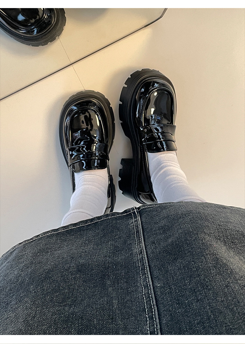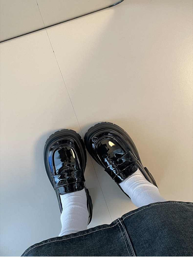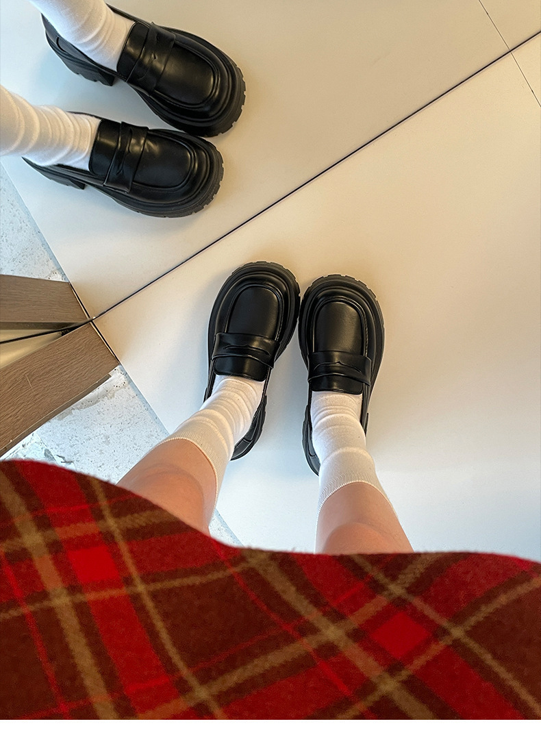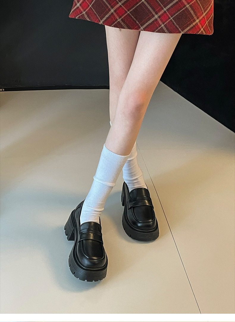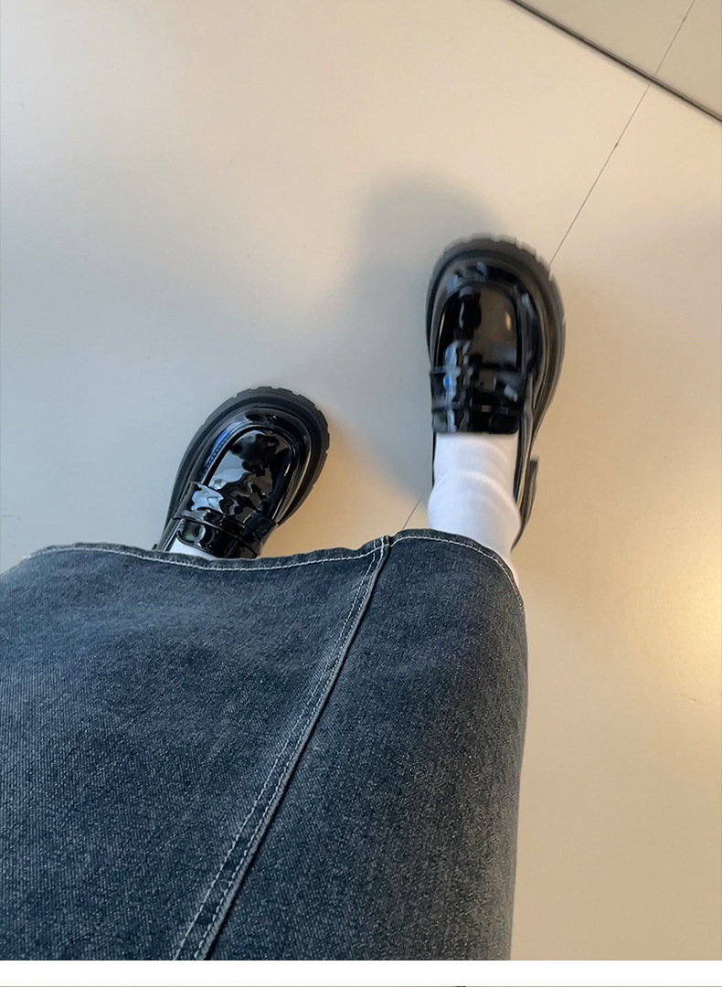 영국 스타일 라운드 발가락 블랙 두꺼운 가죽 신발 여성의 가을과 겨울 2024 새로운 올 매치 두꺼운 힐 빈티지 프렌치 로퍼스토어 가기