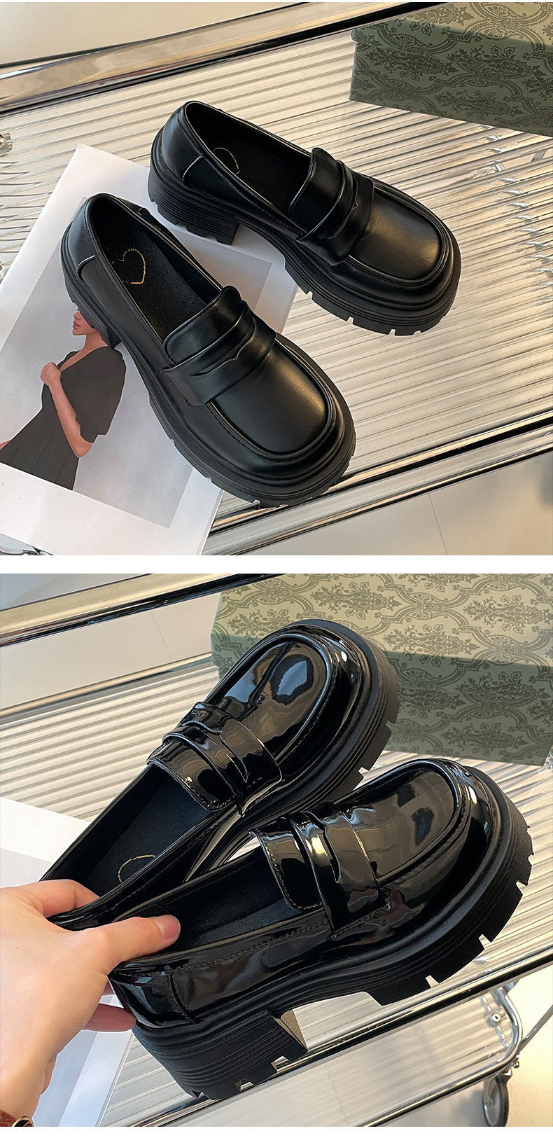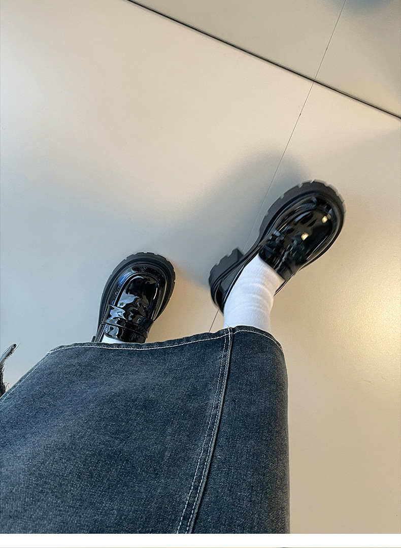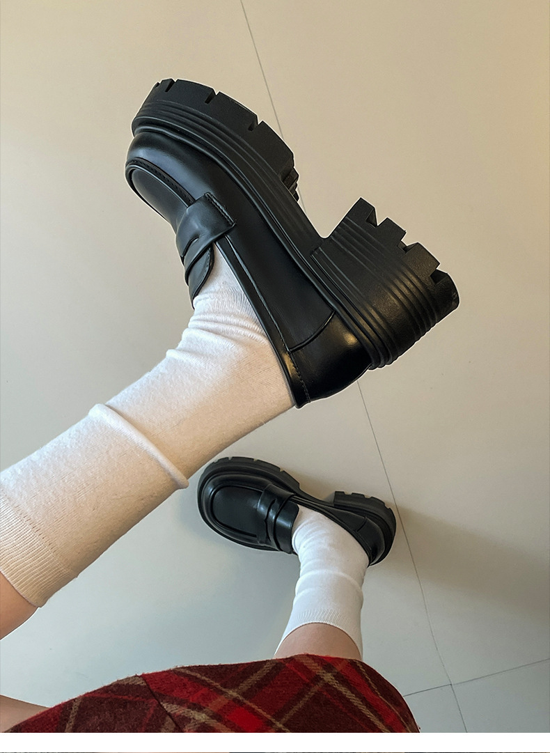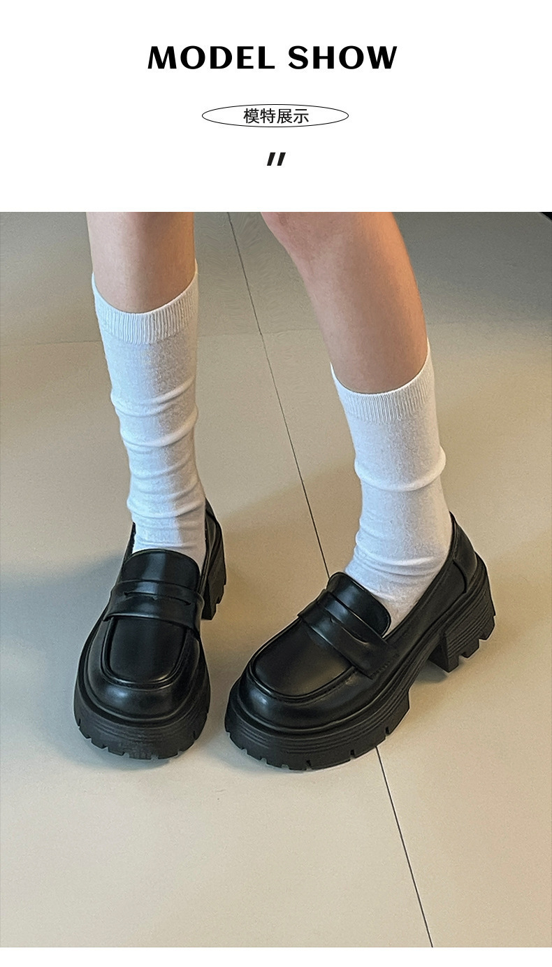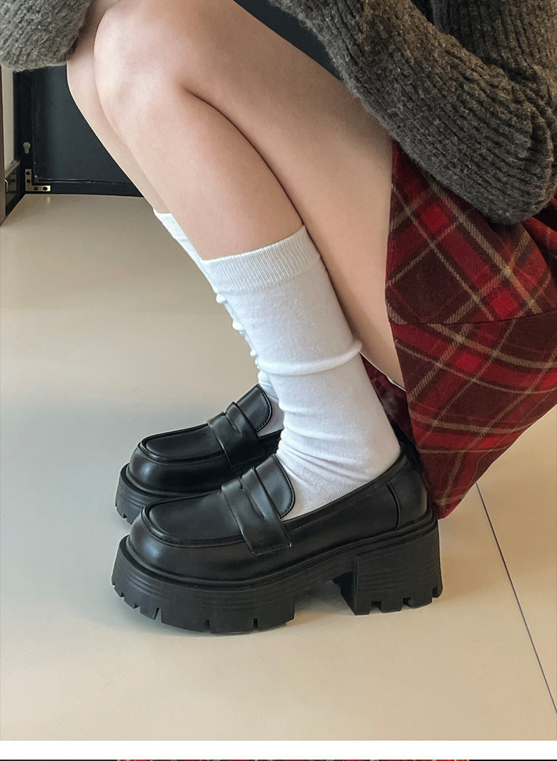 영국 스타일 라운드 발가락 블랙 두꺼운 가죽 신발 여성의 가을과 겨울 2024 새로운 올 매치 두꺼운 힐 빈티지 프렌치 로퍼스토어 가기