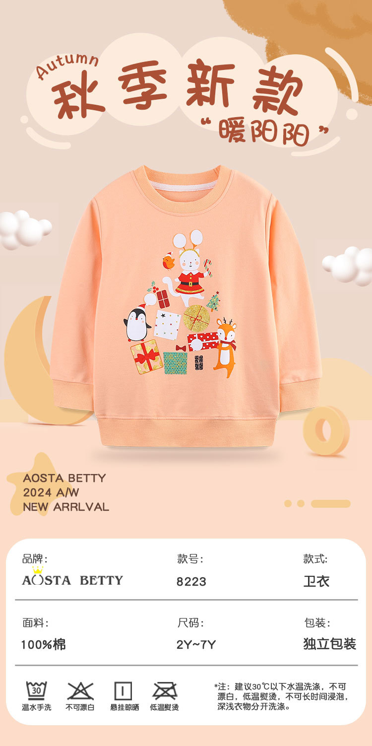 유럽과 미국 스타일 소녀의 크리스마스 만화 동물 프린트 스웨트 셔츠 가을 새로운 어린이 라운드 넥 베이스 탑스토어 가기