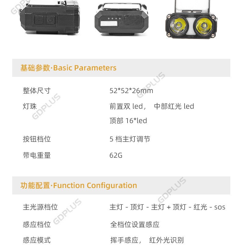 국경 새로운 다기능 유도 헤드 라이트 USB 자전거 라이트 LED 캡 라이딩 손전등 낚시 야외스토어 가기