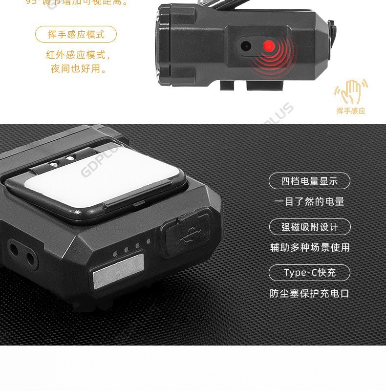 국경 새로운 다기능 유도 헤드 라이트 USB 자전거 라이트 LED 캡 라이딩 손전등 낚시 야외