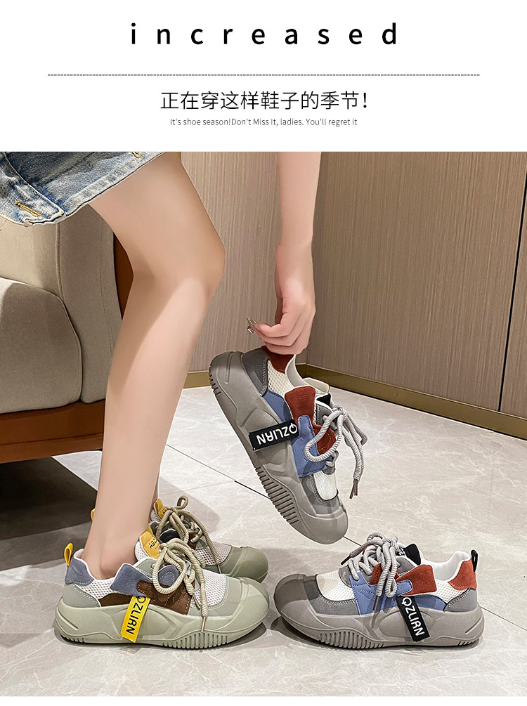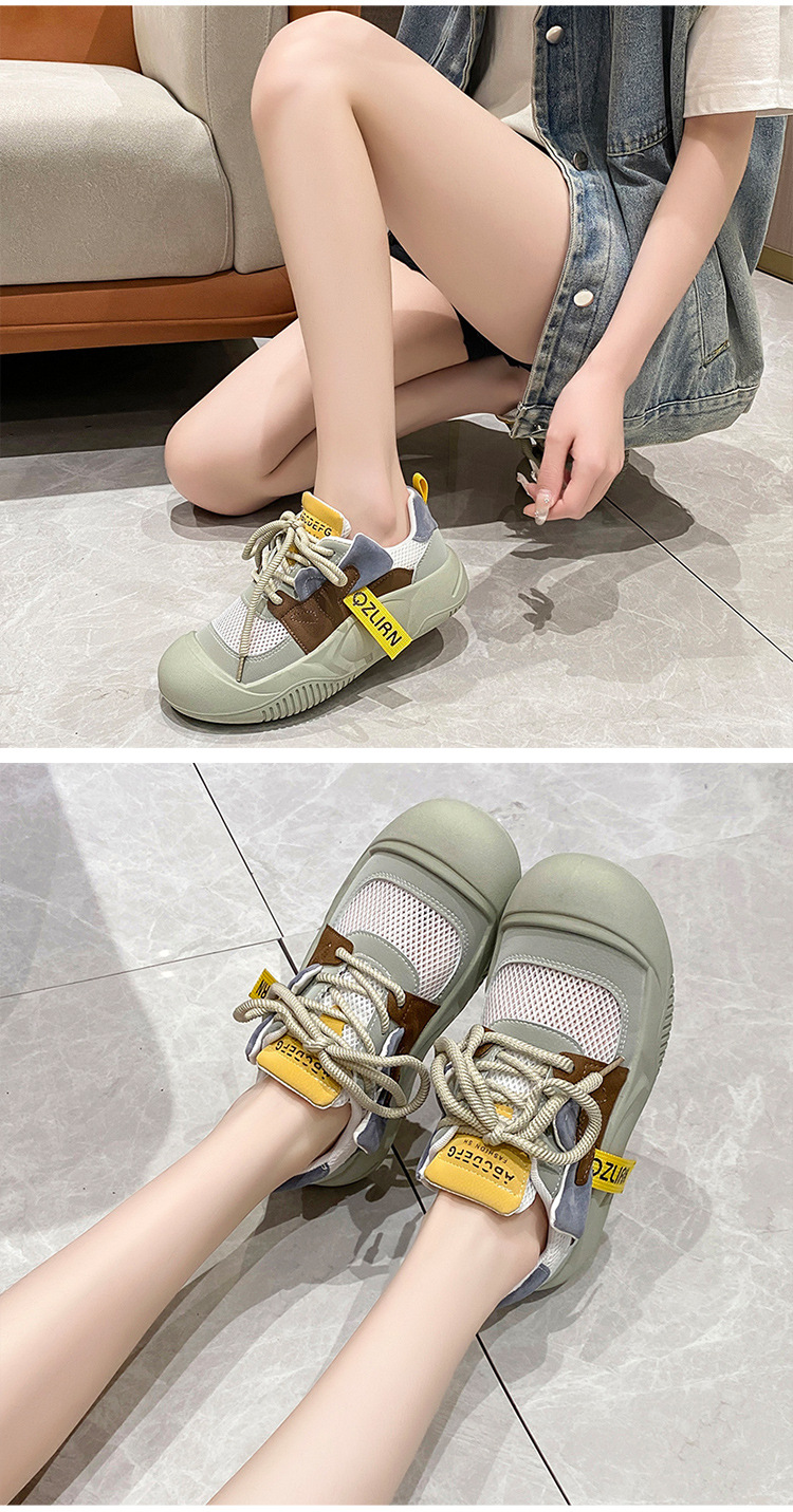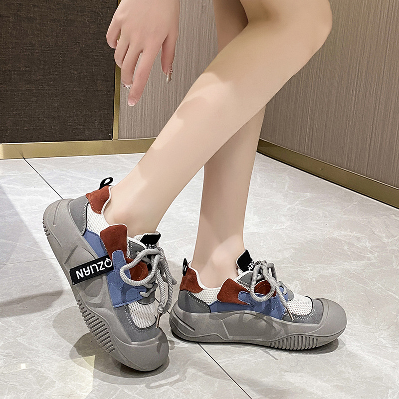 두꺼운 밑창 캐주얼 신발 여성의 새로운 봄과 여름 2024 메시 통기성 보드 신발 가벼운 부드러운 밑창 여행 운동화 여성의 세련된 신발스토어 가기