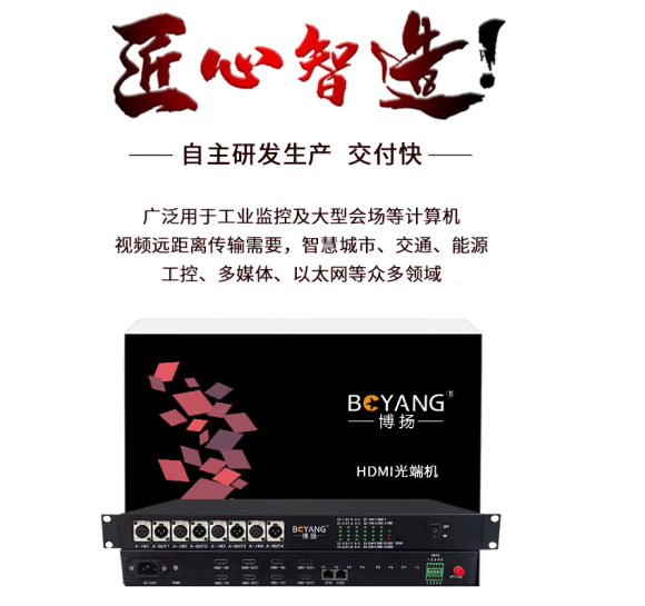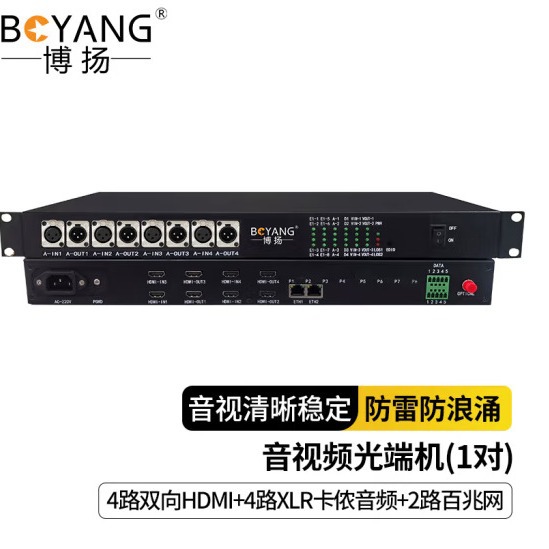 博扬 视频会议专用光端机 音视频光端机 4路双向HDMI视频+4路XLR卡侬平衡音频+2路百兆网 1对价 BY-4Hh4Xx2E*1合格证*1保修卡