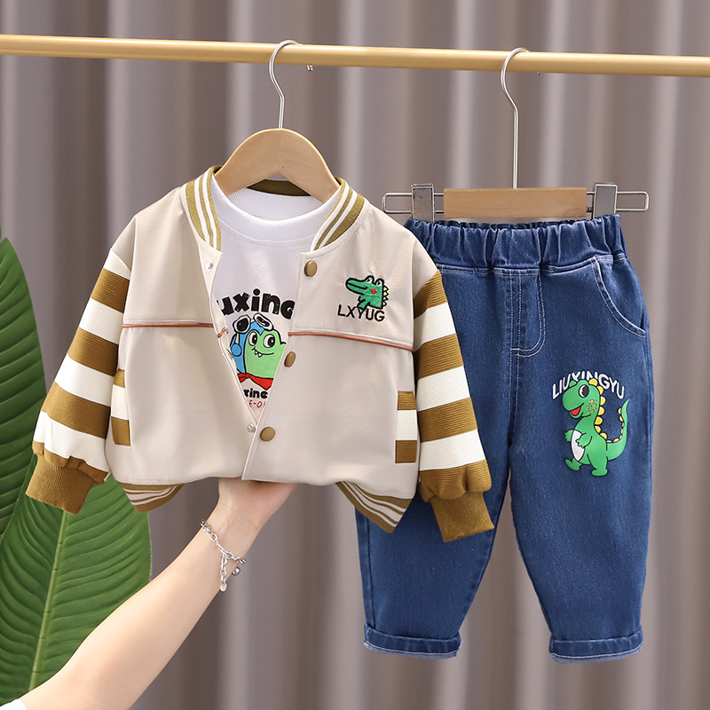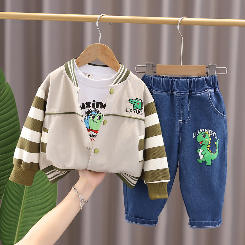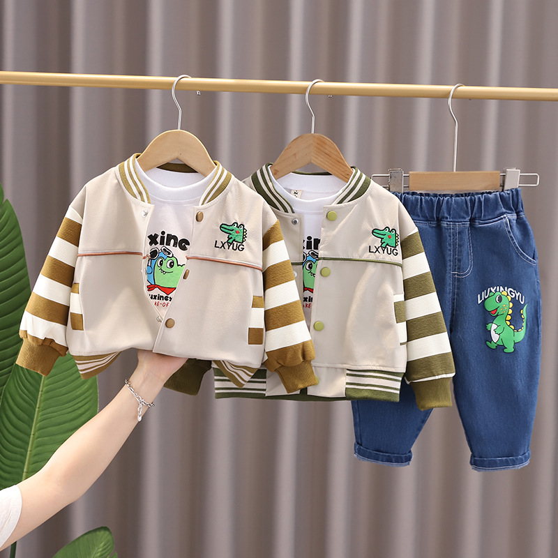 소년의 가을 세트 2024 새로운 외국 스타일의 아기 만화 3 피스 아기 봄과 가을 유행 옷스토어 가기