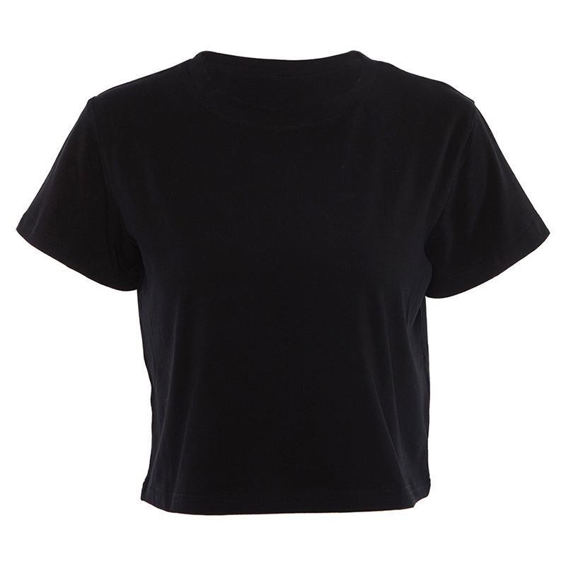 유럽과 미국의 패션 대외 무역 새로운 여성 의류 2025 여름 단색 통기성 다목적 반팔 배꼽 노출 티셔츠 드롭 배송스토어 가기