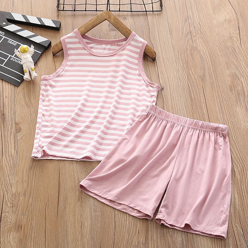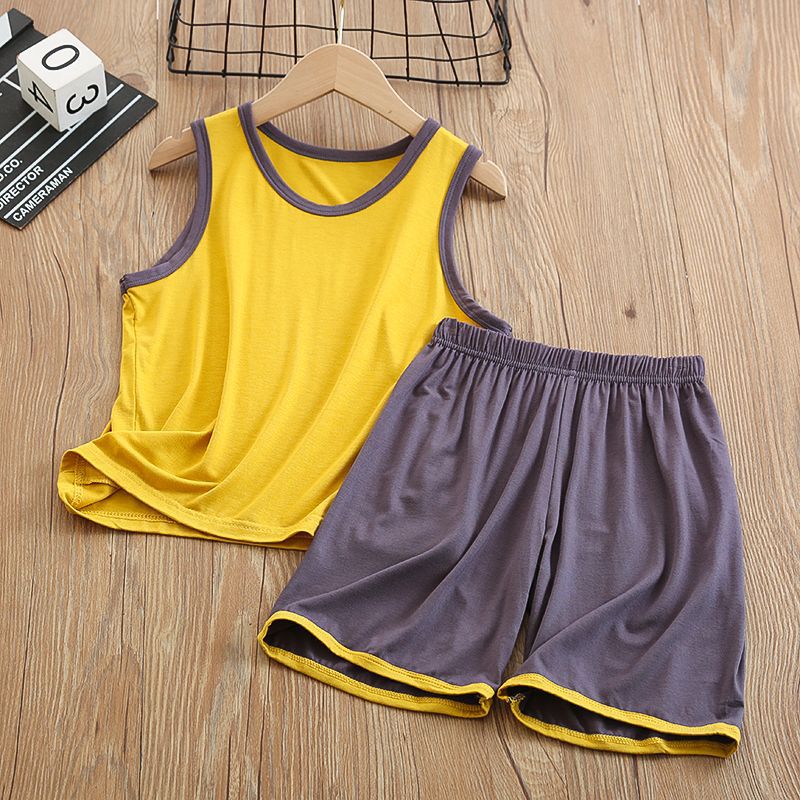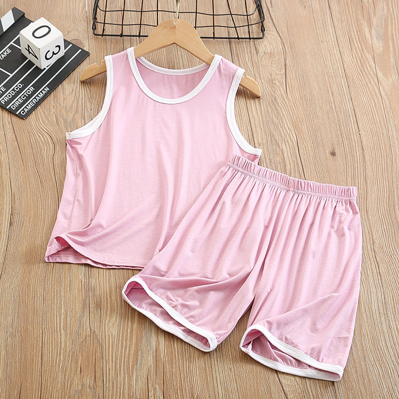 중다 어린이 모달 조끼 세트 반바지 얇은 가정 소년의 민소매 에어컨 옷 아이스 실크 파자마 여름