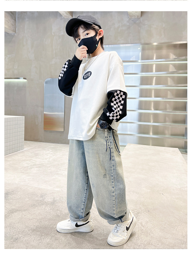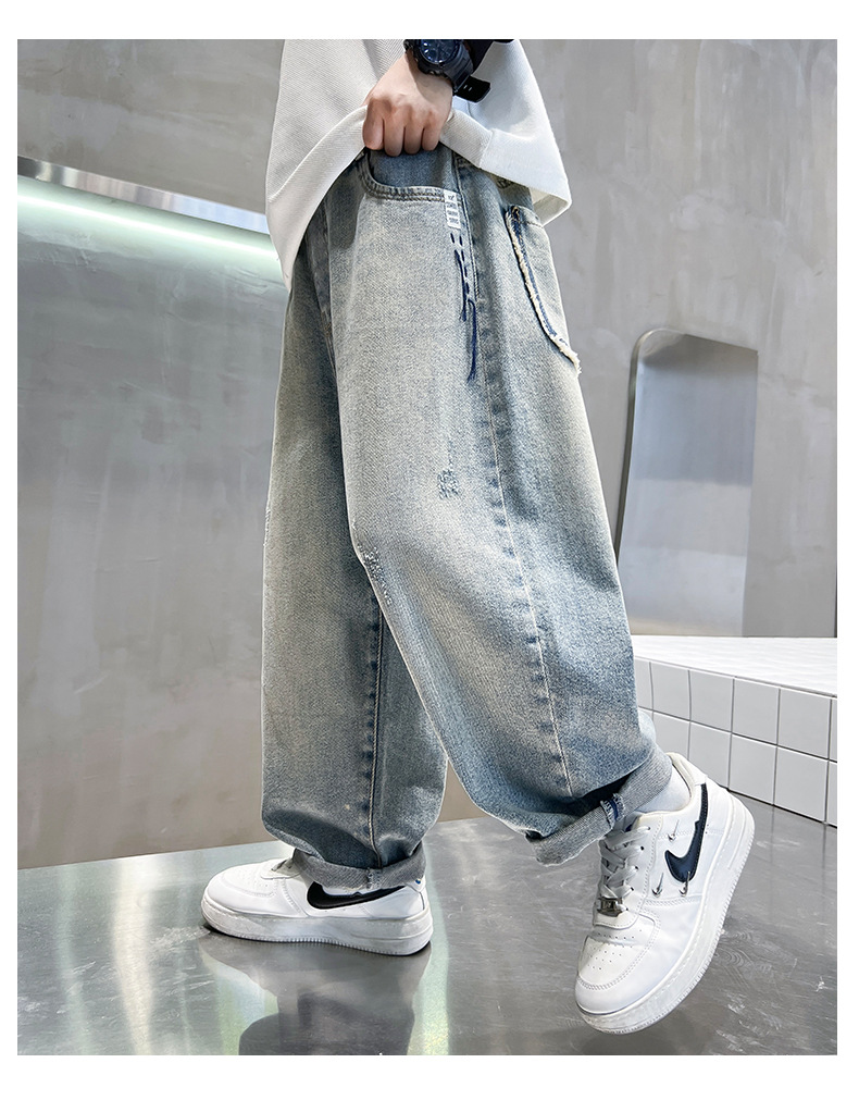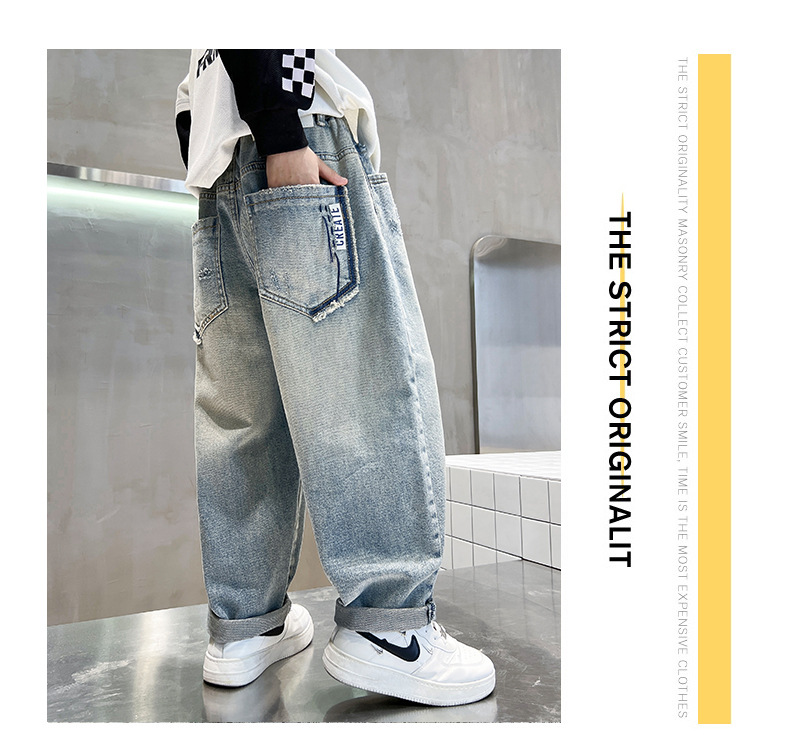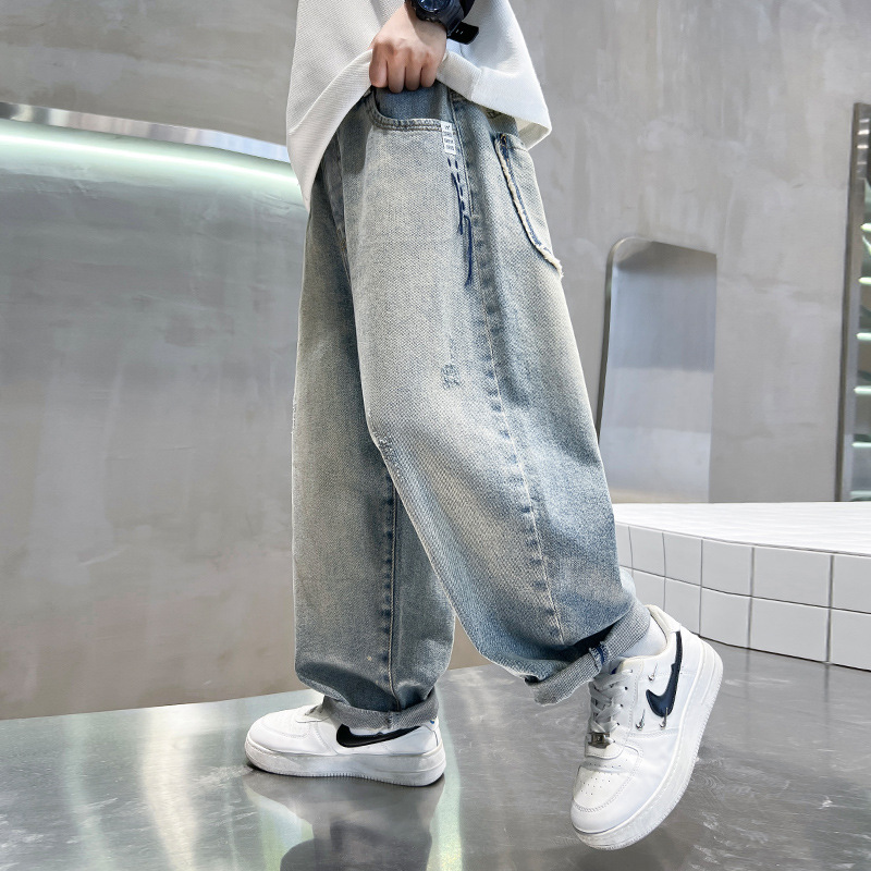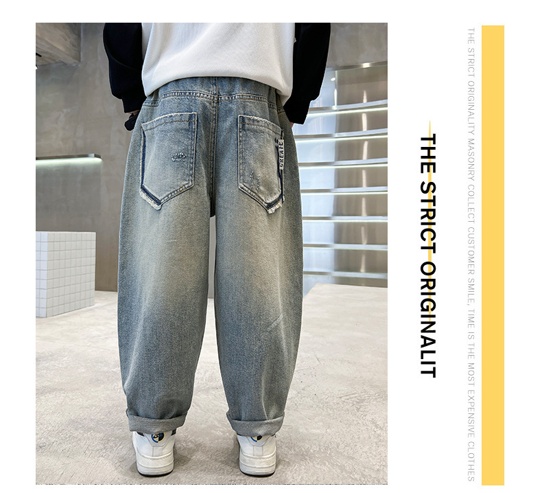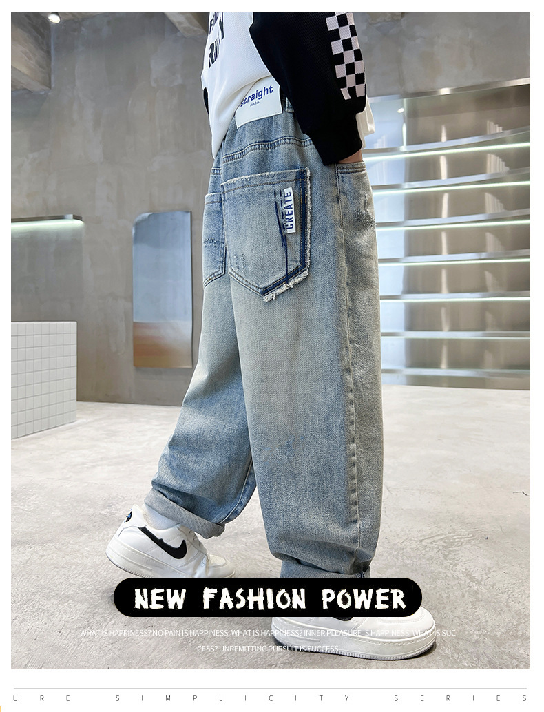 소년 바지 봄과 가을 2024 새로운 어린이 가을 청바지 큰 어린이 가을 바지 멋쟁이