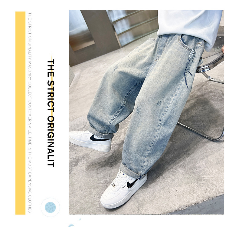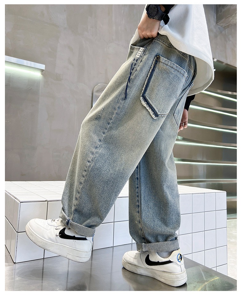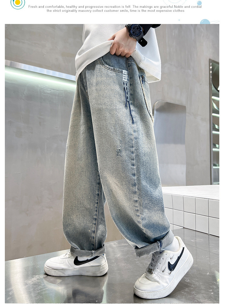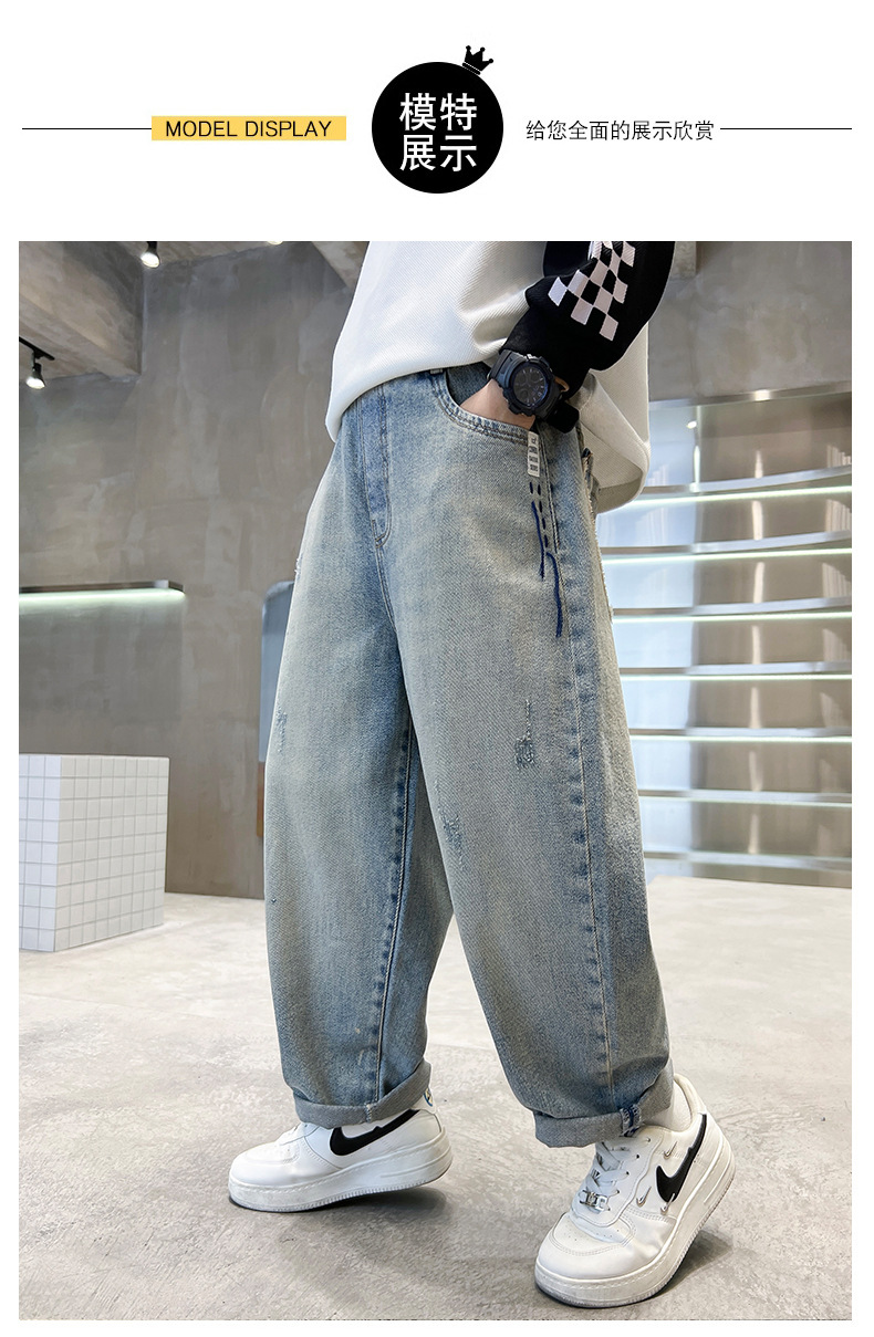 소년 바지 봄과 가을 2024 새로운 어린이 가을 청바지 큰 어린이 가을 바지 멋쟁이스토어 가기