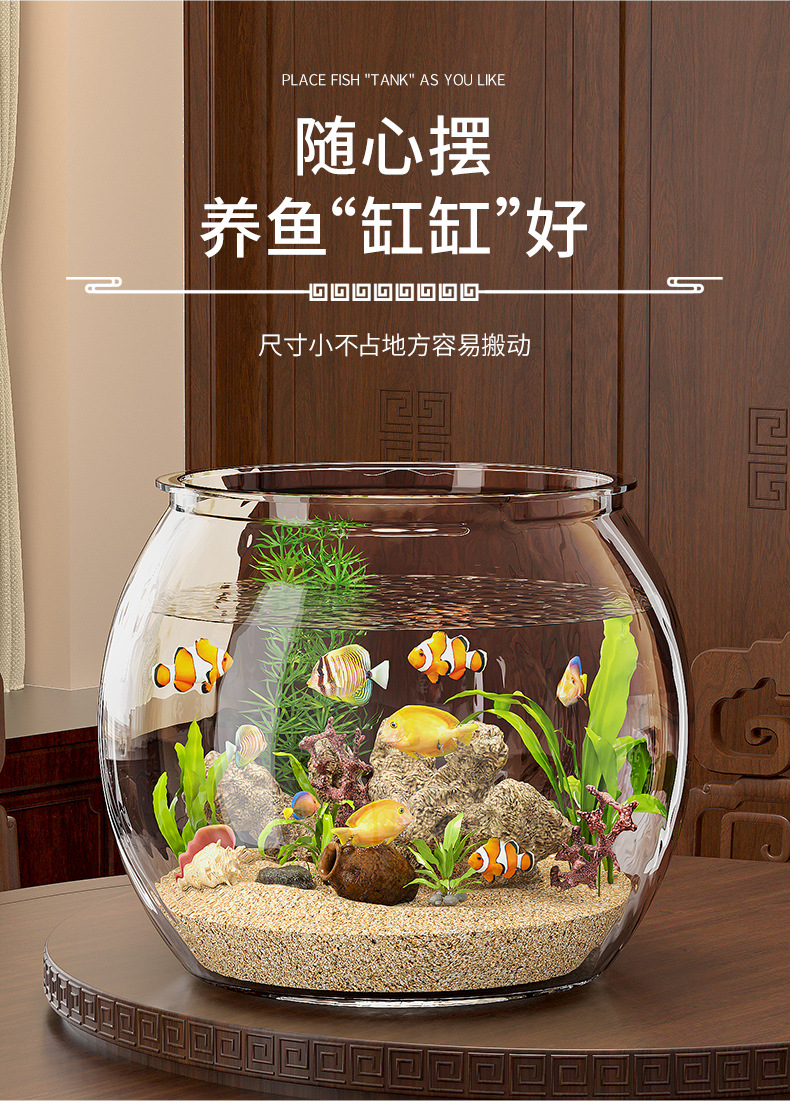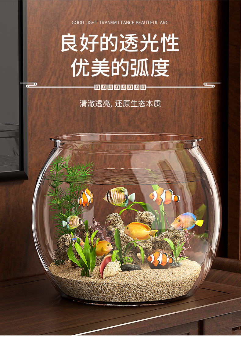 사무실 작은 물고기 탱크 두꺼운 투명 플라스틱 거북이 탱크 거실 가정용 데스크탑 라운드 풍경 작은 금붕어 탱크스토어 가기
