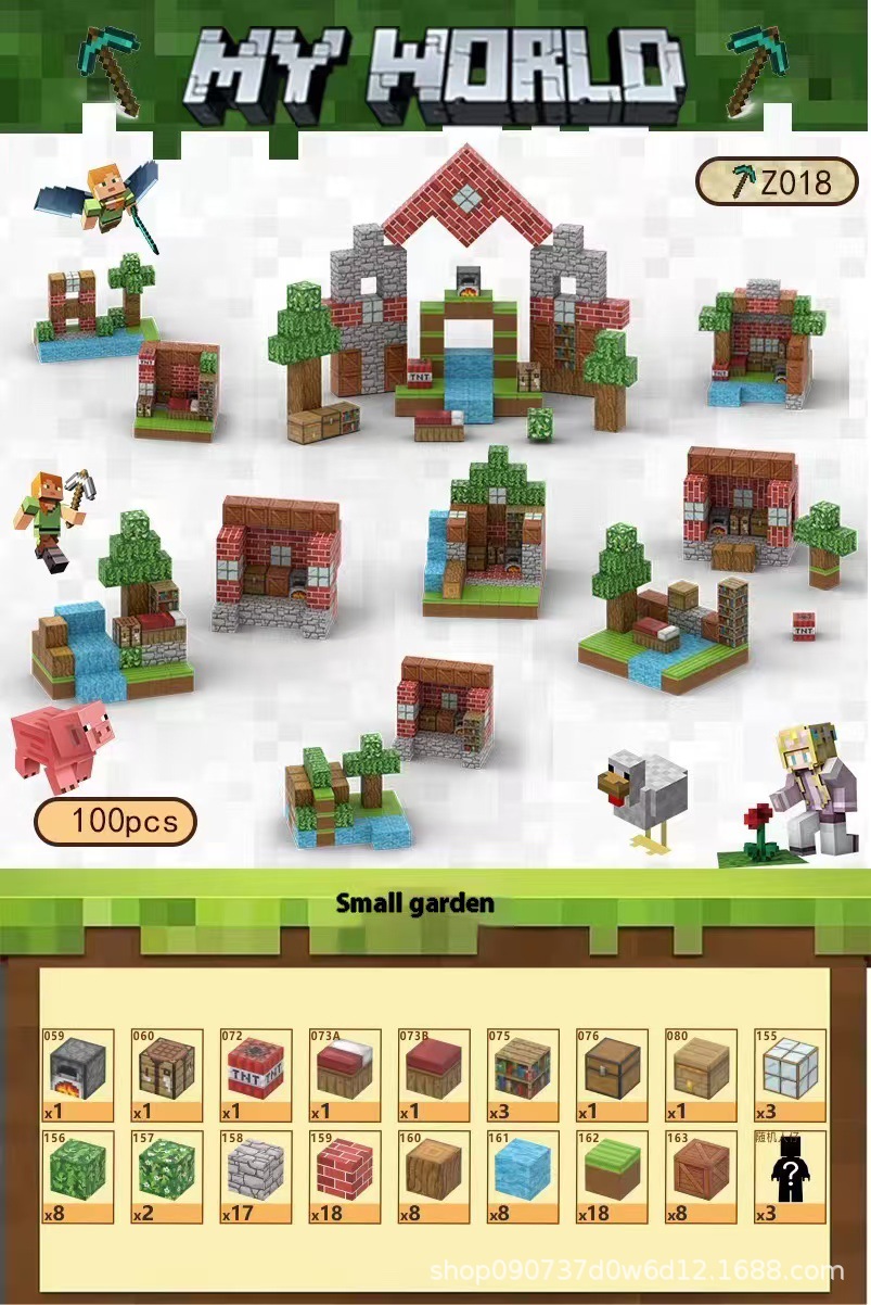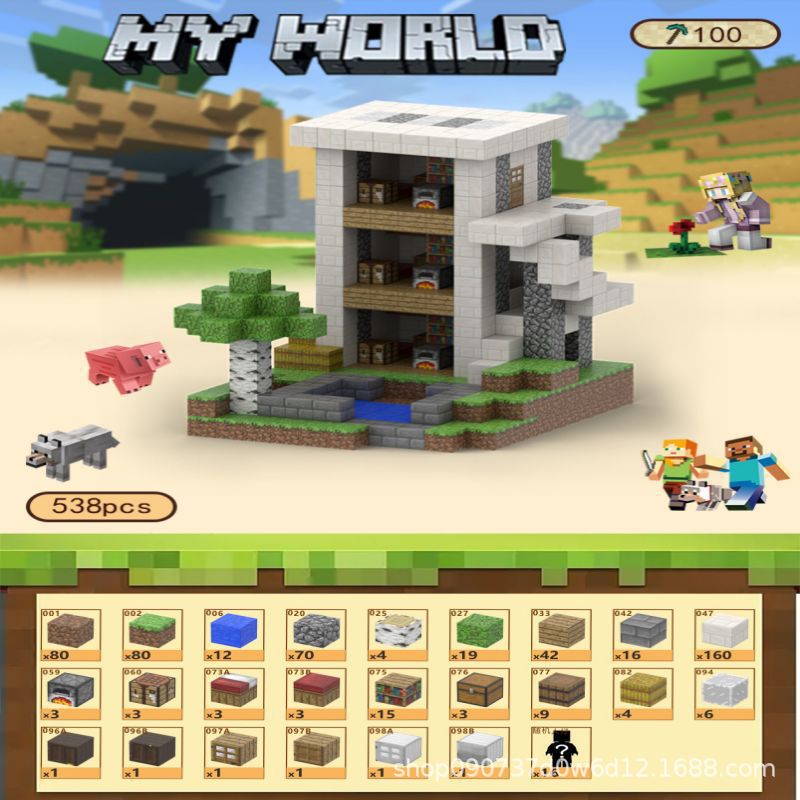 • 100개의 3층 아파트 건물(빌딩 블록 538개, 인형 16개)