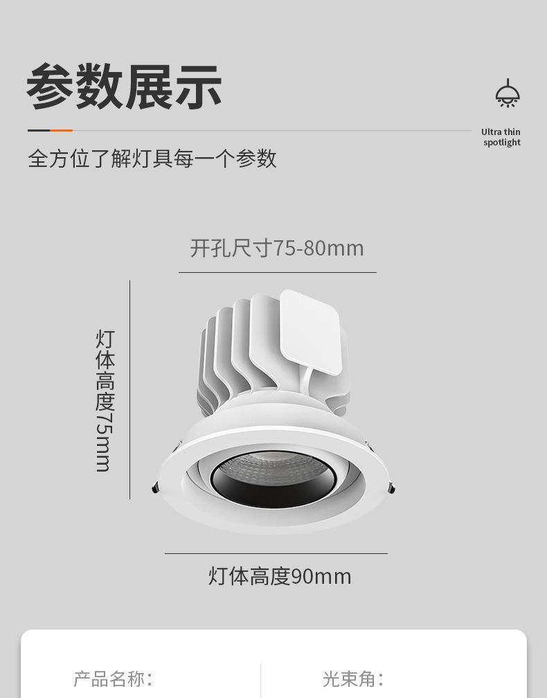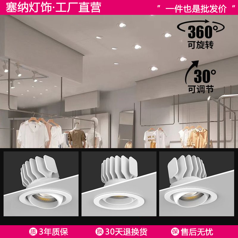 코끼리 코 램프 의류 매장 황소의 눈 스포트라이트 임베디드 천장 램프 거실 led 조정 각도 다운 라이트 상업 상점스토어 가기