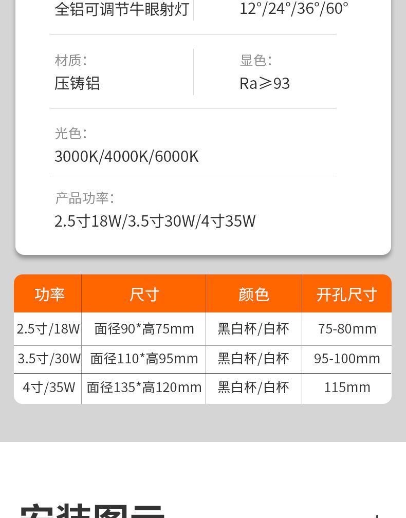 • 30와트(황소 스포트라이트 - 전체 알루미늄 조절 가능)