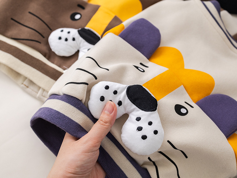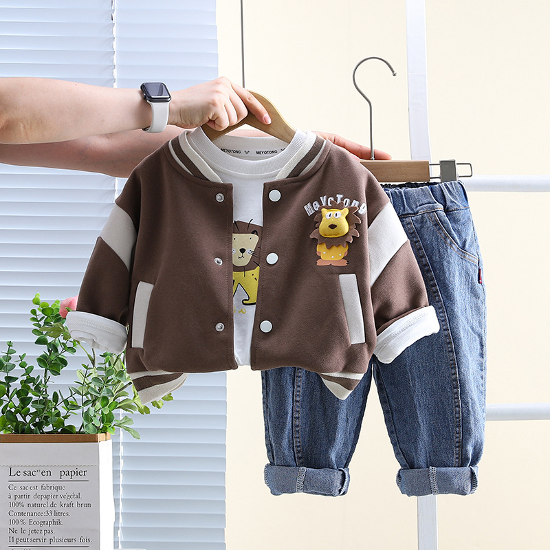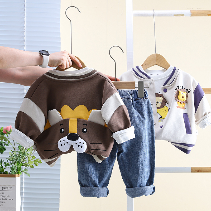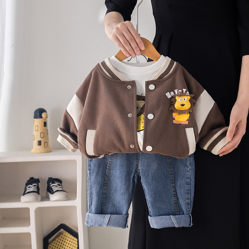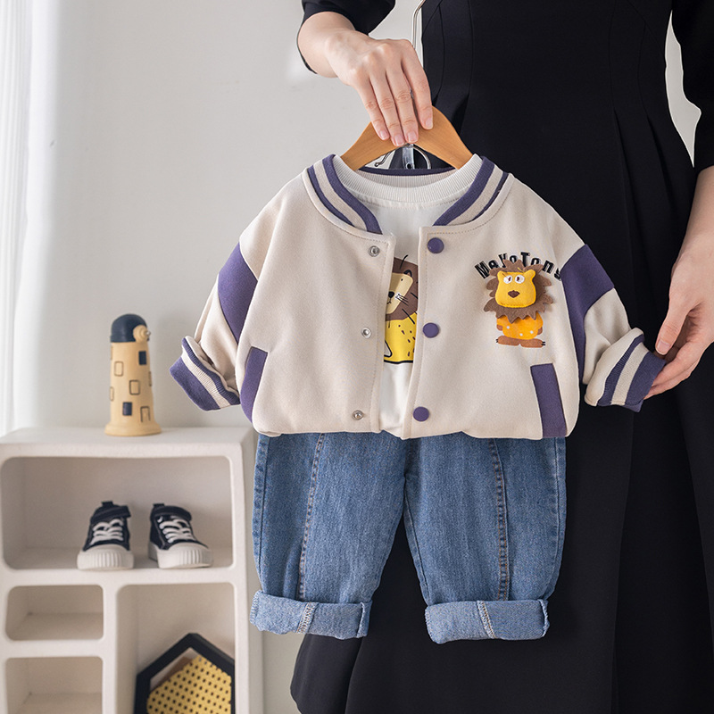 五小七 아동복 2025 봄 가을 신상 0-5세 남아용 한국 스타일 만화 작은 사자 야구복 3종 세트