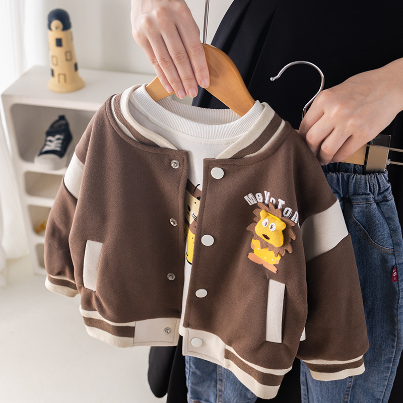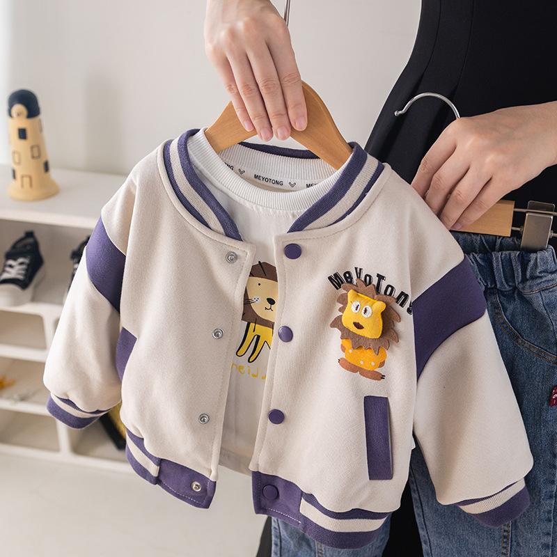 五小七 아동복 2025 봄 가을 신상 0-5세 남아용 한국 스타일 만화 작은 사자 야구복 3종 세트스토어 가기