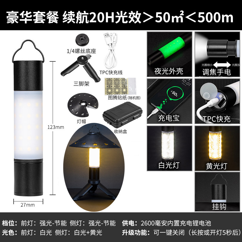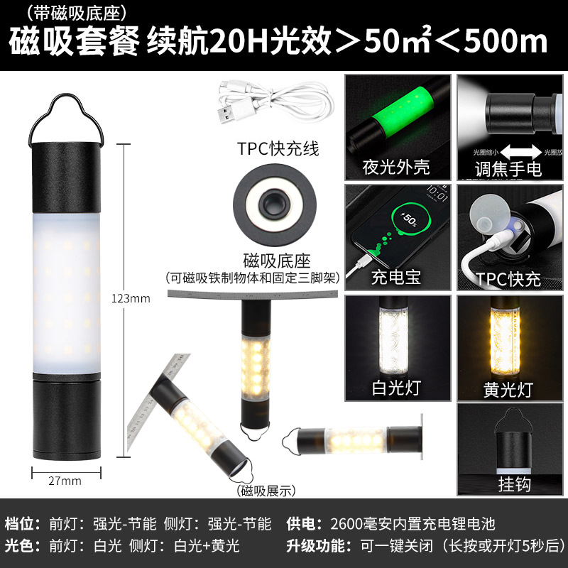 • 빛나는/초점/흰색과 노란색 이중 빛/충전 보물/TPC 충전/내구성 20H