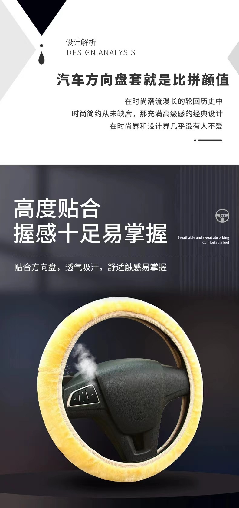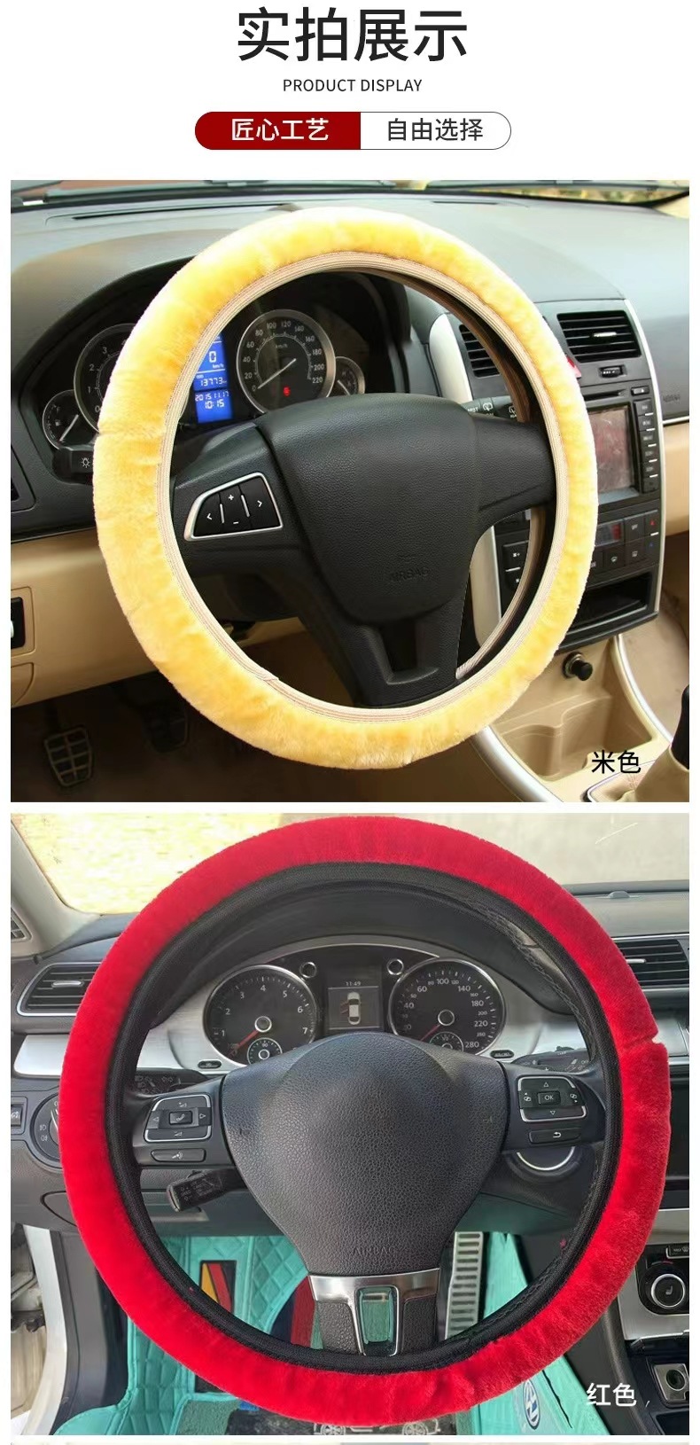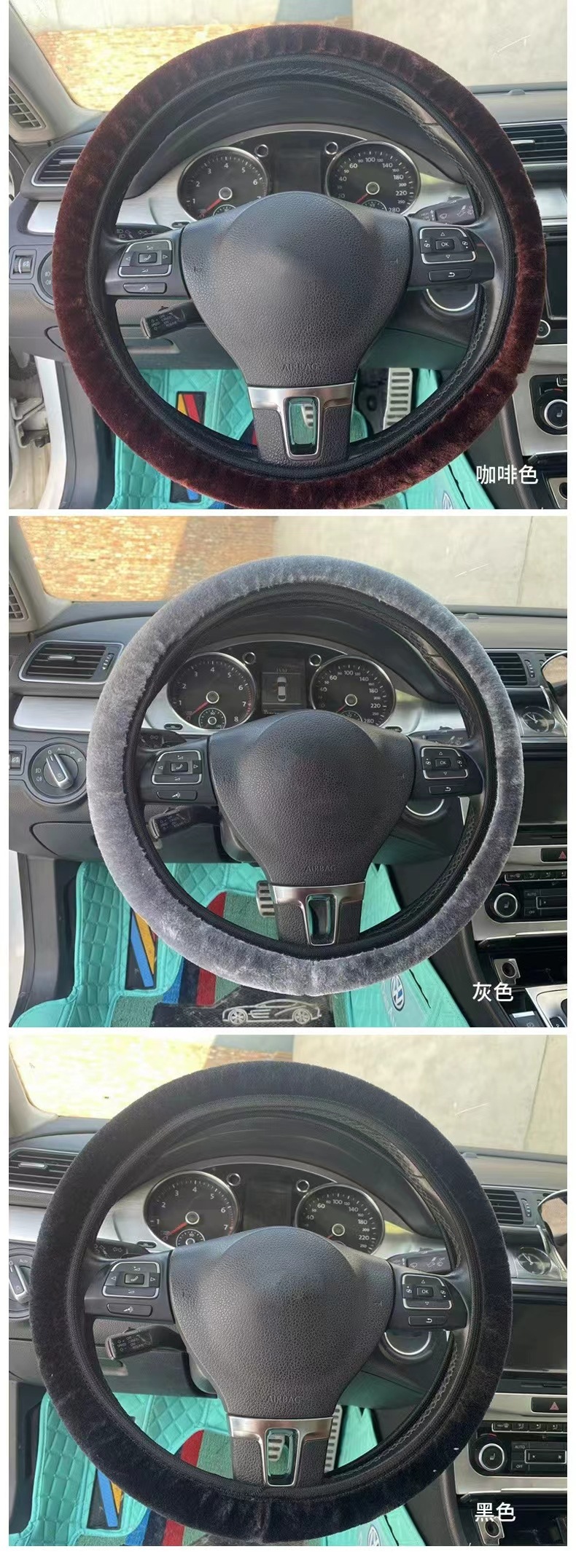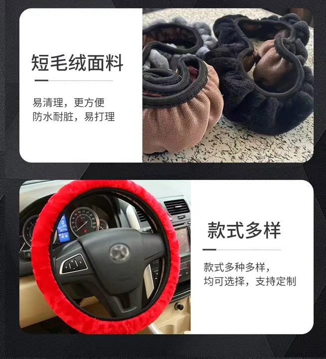 짧은 봉제 따뜻한 미끄럼 방지 자동차 실내 장식 내부 링 탄성 밴드 스트레치 핸들 세트 자동차 스티어링 휠 핸들 세트 도매