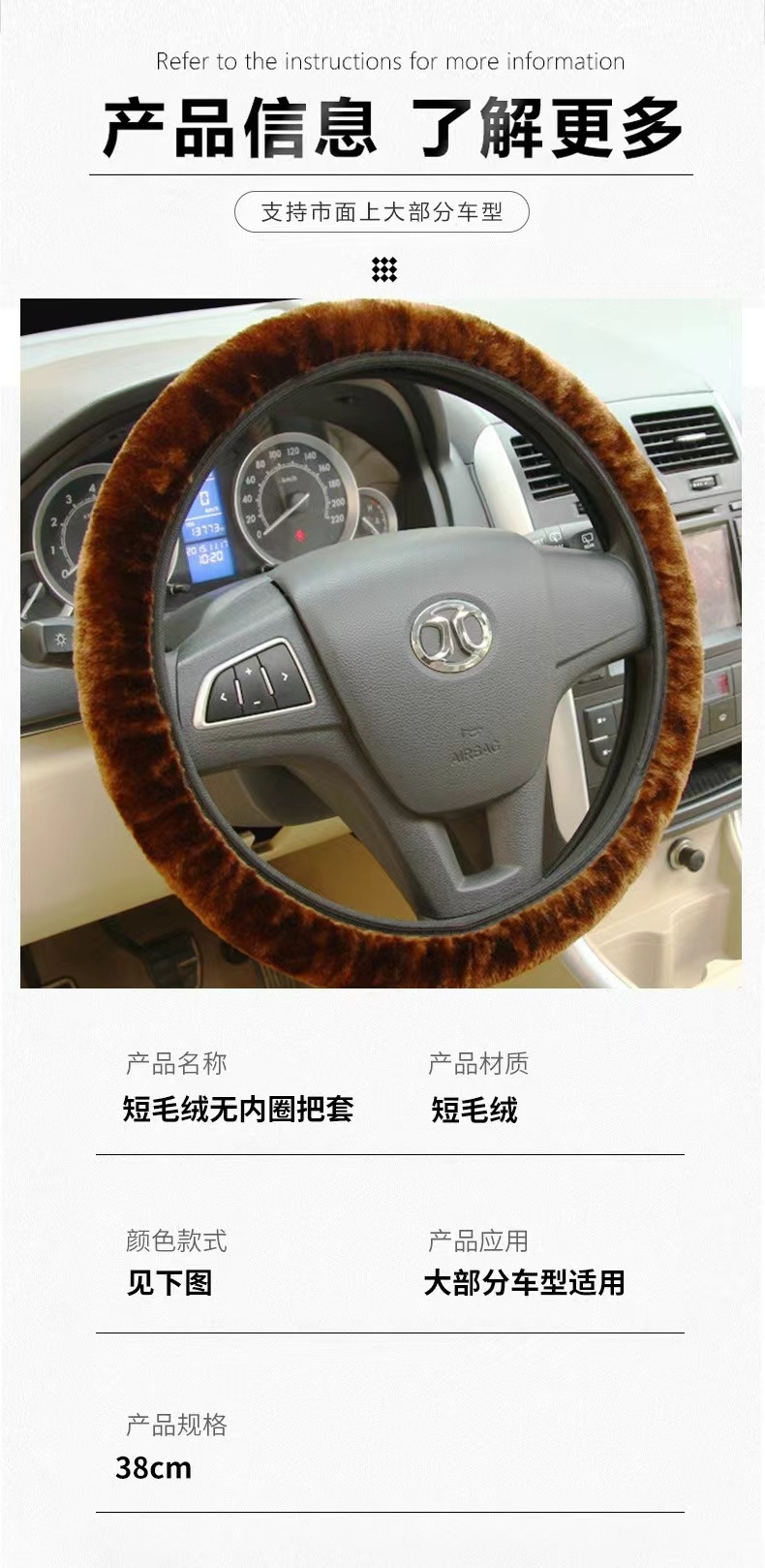 짧은 봉제 따뜻한 미끄럼 방지 자동차 실내 장식 내부 링 탄성 밴드 스트레치 핸들 세트 자동차 스티어링 휠 핸들 세트 도매스토어 가기