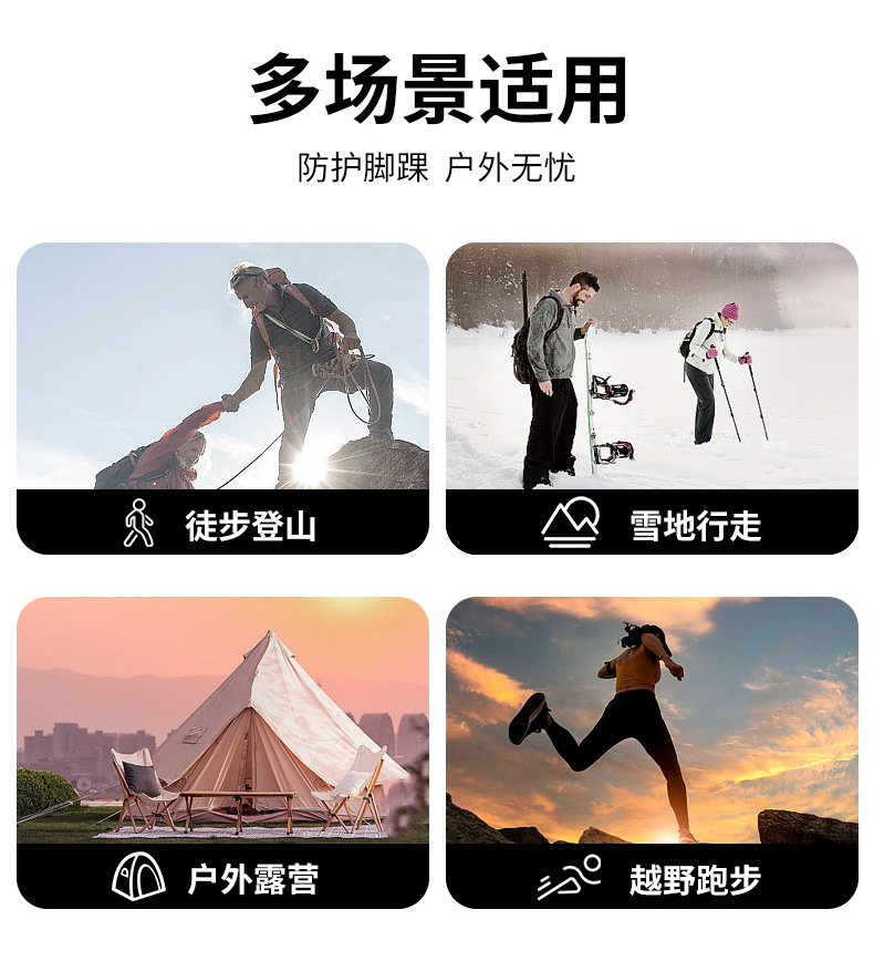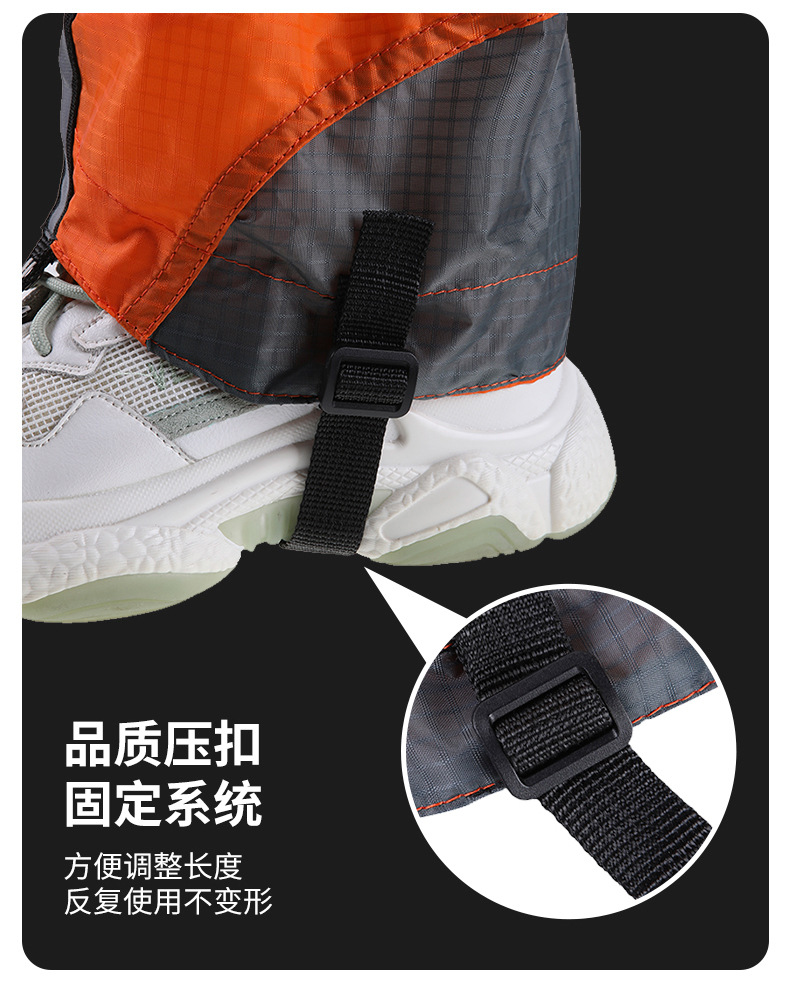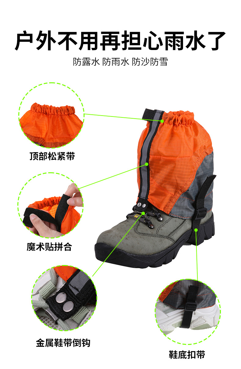 Usage: It has a sand prevention effect in desert environments, and can prevent ankles and pants from getting dirty and wet during mountaineering.