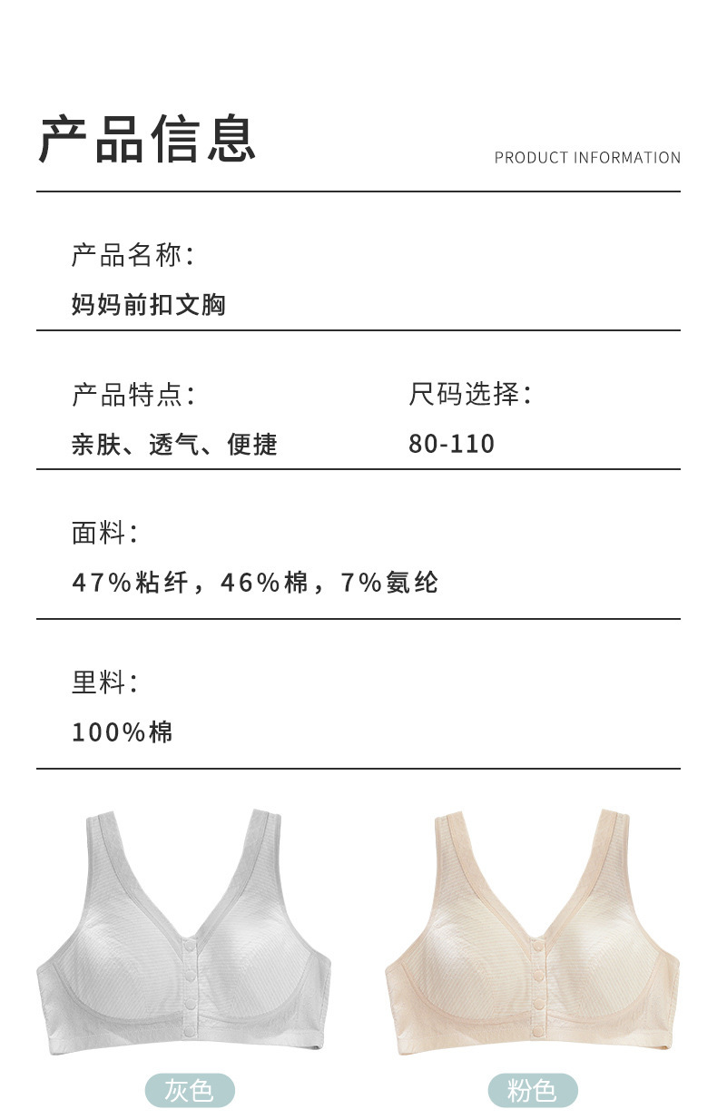 장얀 엄마 속옷 여성 중년 및 노인 여성 무테 통기성 플러스 사이즈 브래지어 조끼 형 전면 버클 얇은 브래지어스토어 가기
