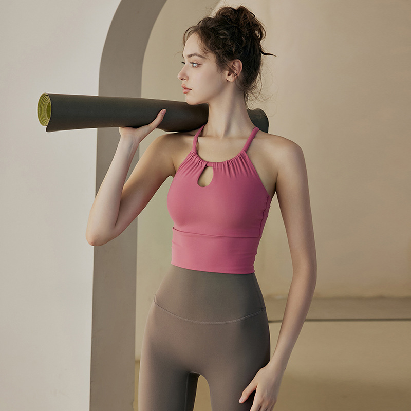 원피스 스포츠 조끼 여성 칼라 목 착용 피트니스 속옷 충격 방지 플러스 사이즈 요가 세트 훈련 브래지어