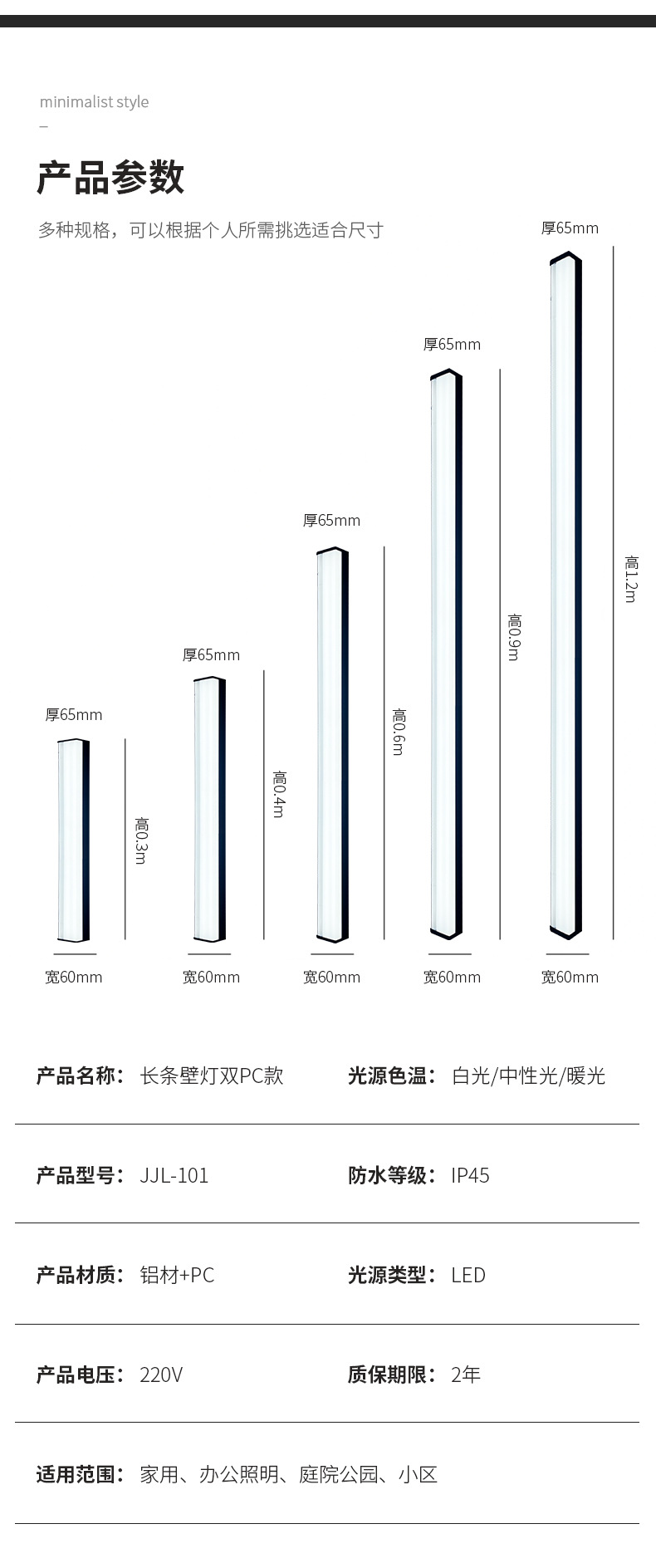 led长条壁灯现代极简庭院灯别墅大门口酒店走廊阳台户外防水壁灯