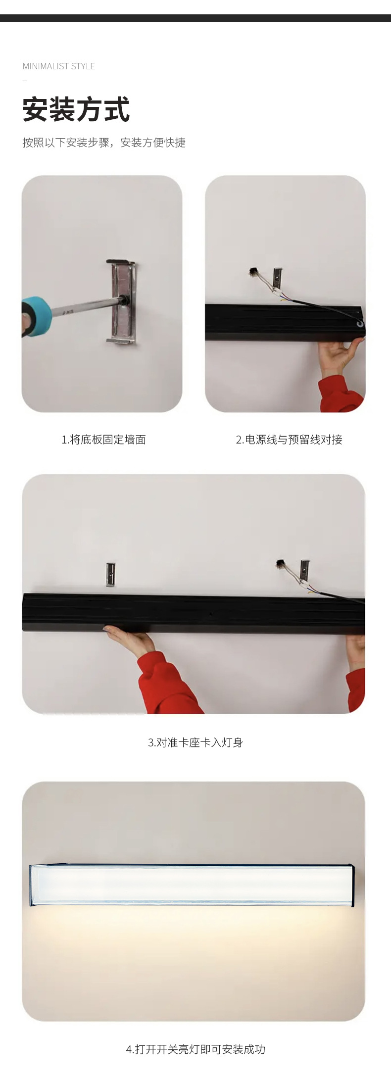 led长条壁灯酒店别墅简约入户门前灯客厅主卧走廊三面发光长壁灯