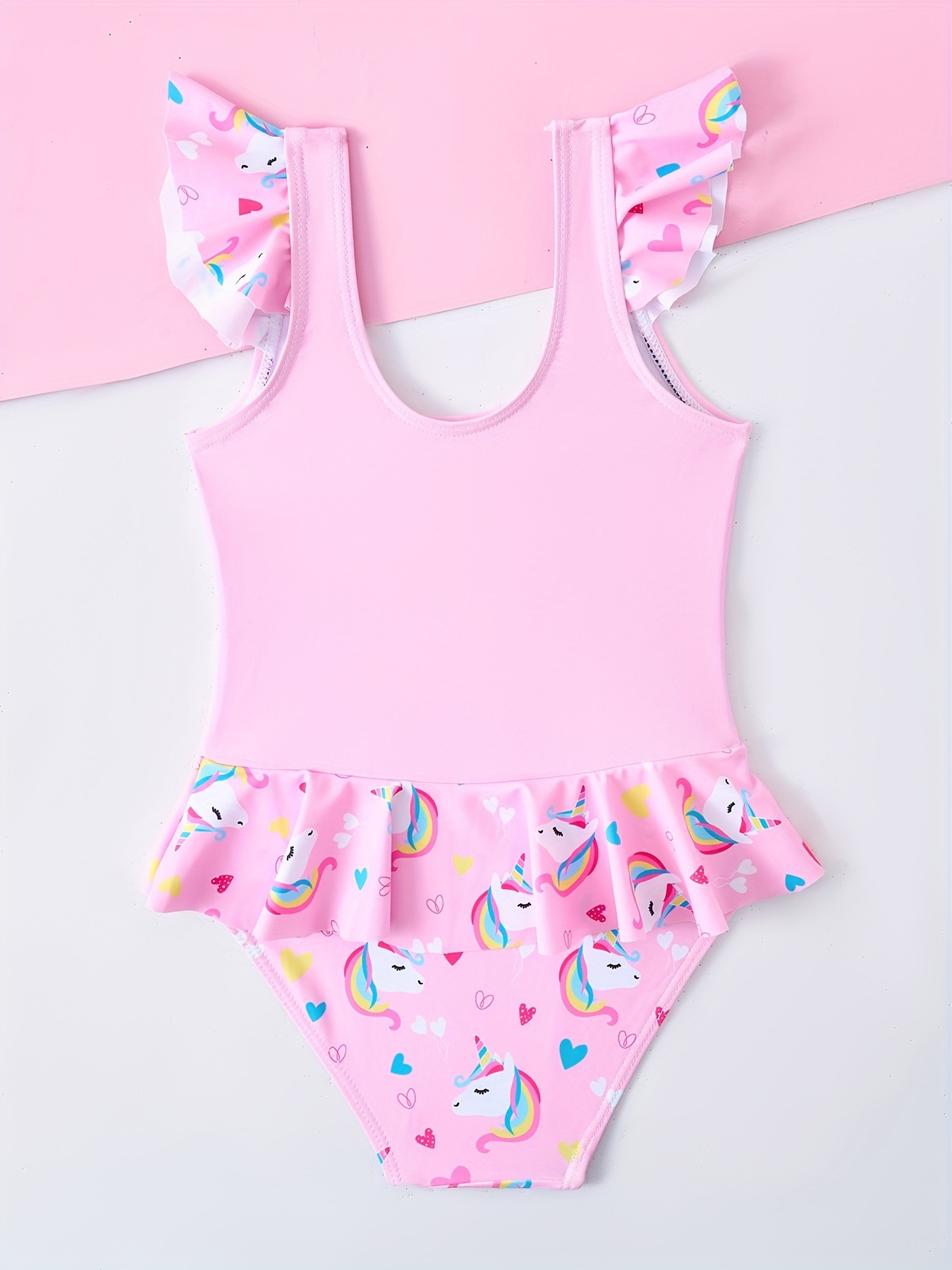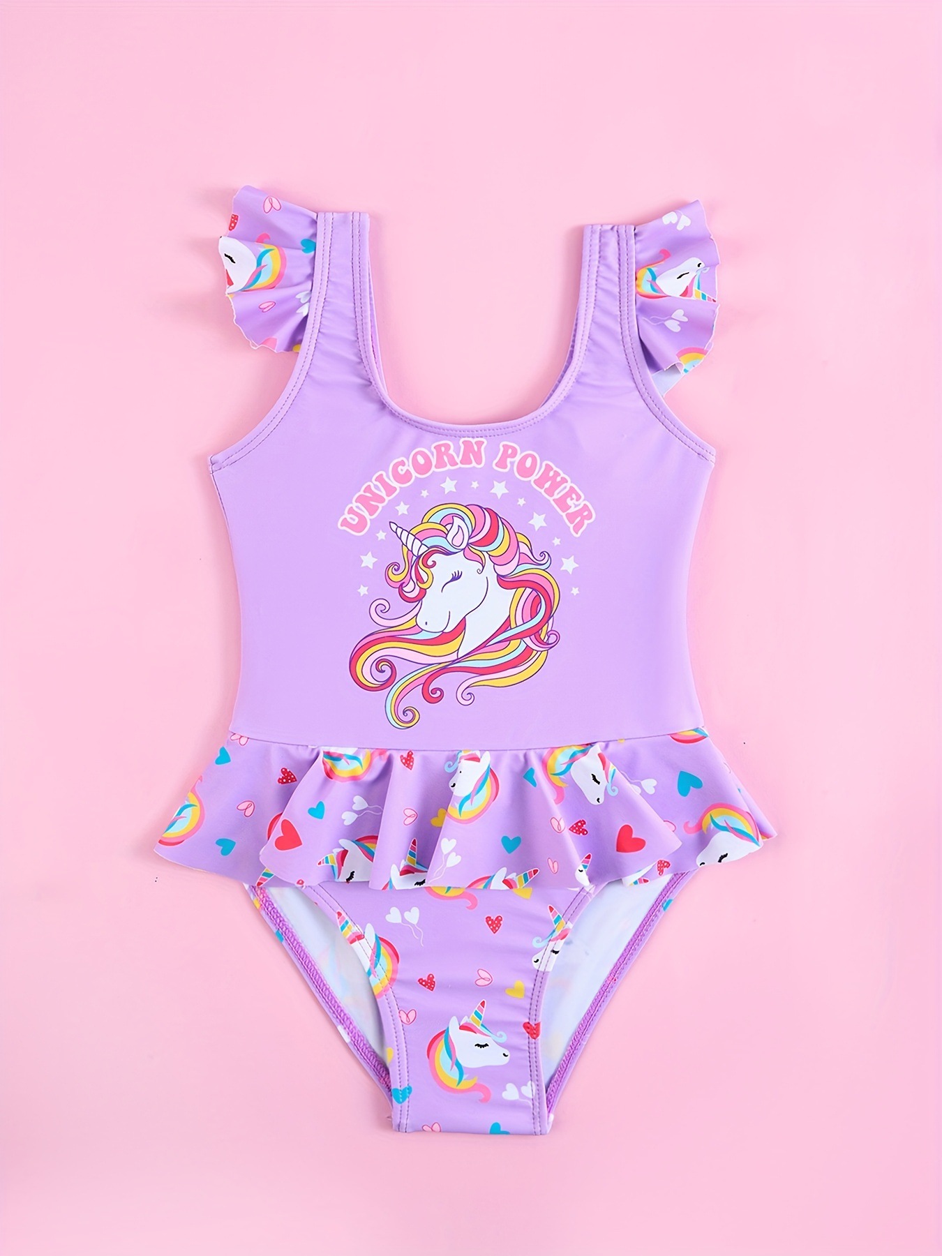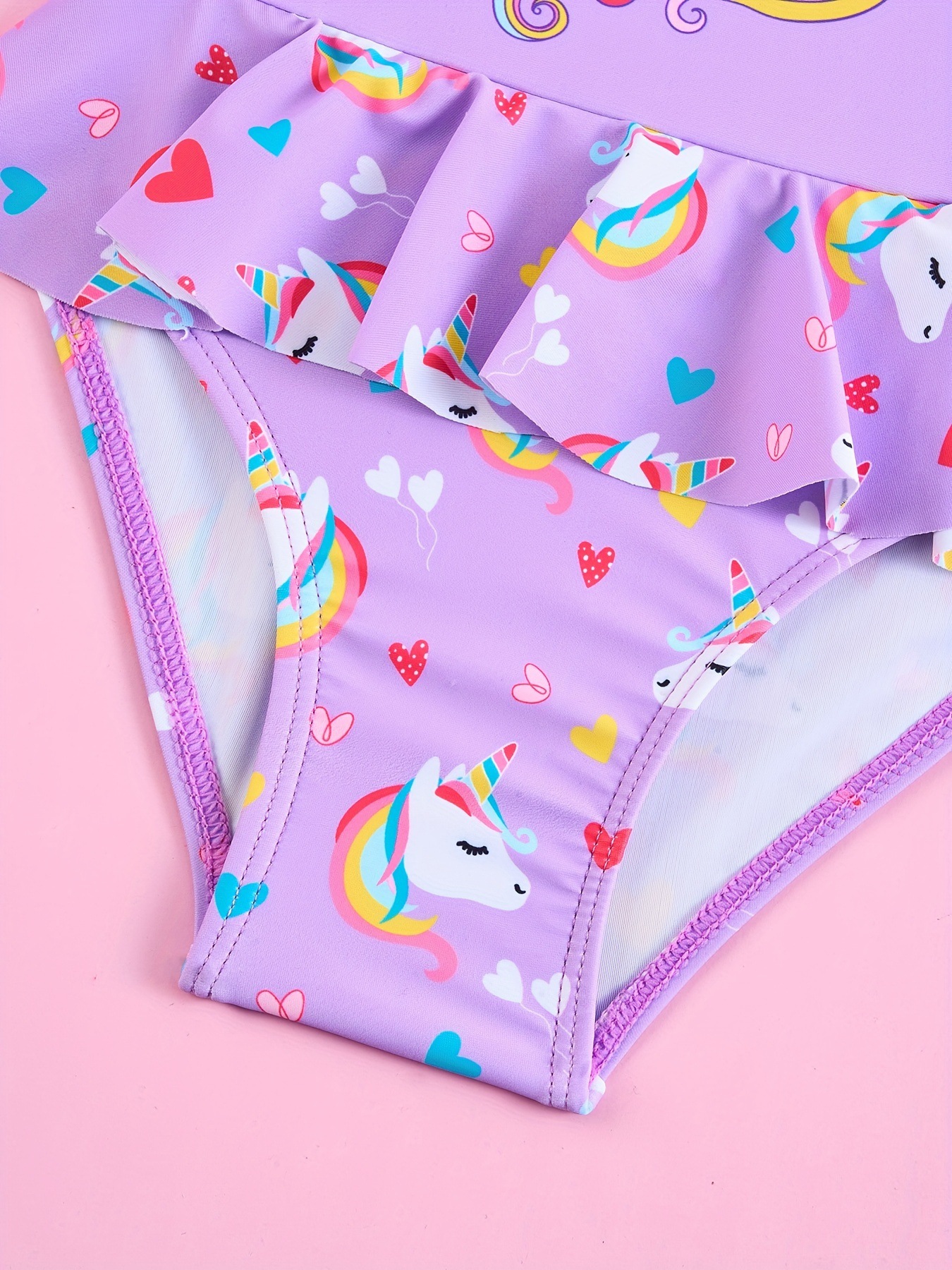 유럽과 미국의 새로운 어린이 수영복 소녀의 고급 유니콘 스타일 원피스 수영복 소녀 수영복