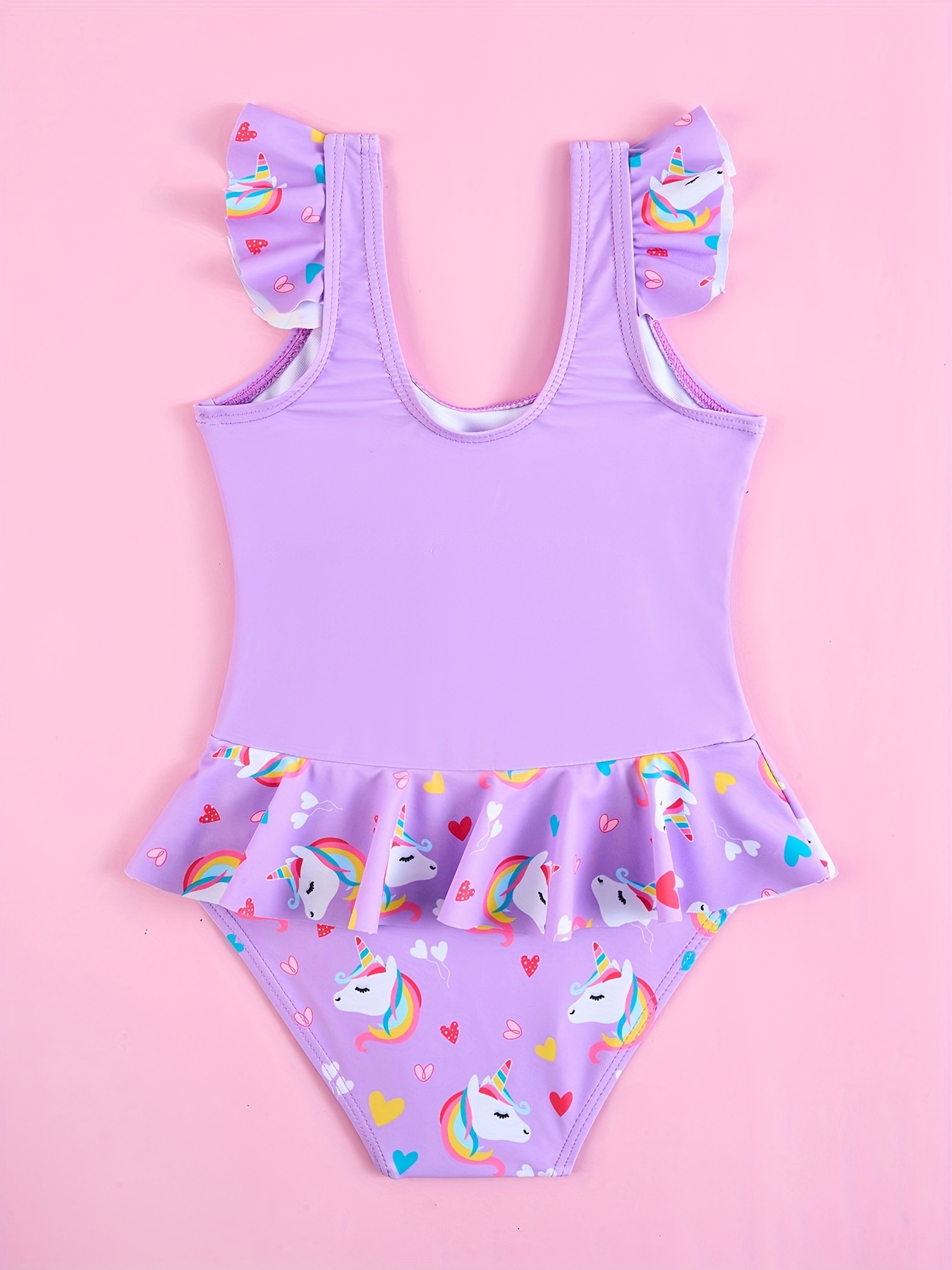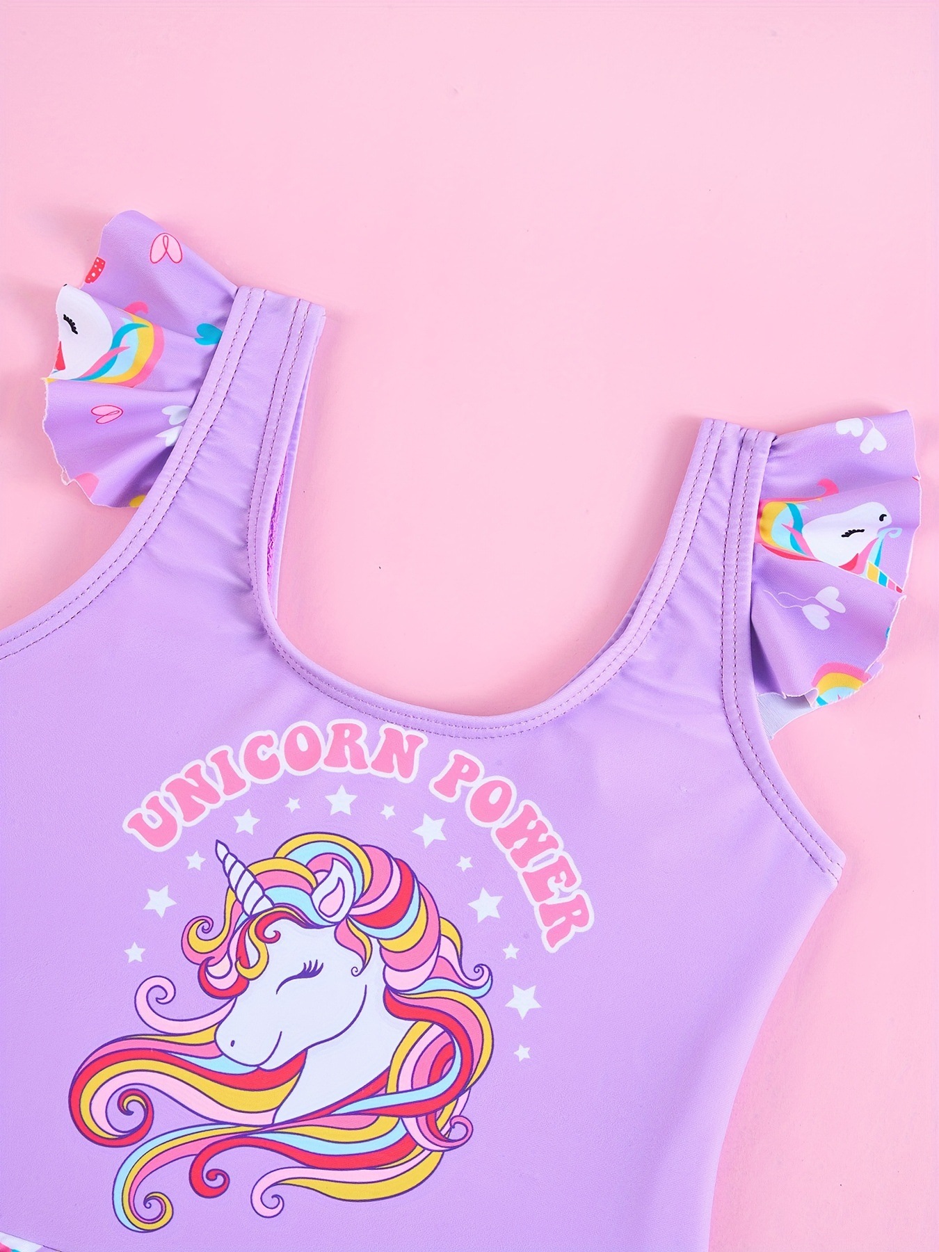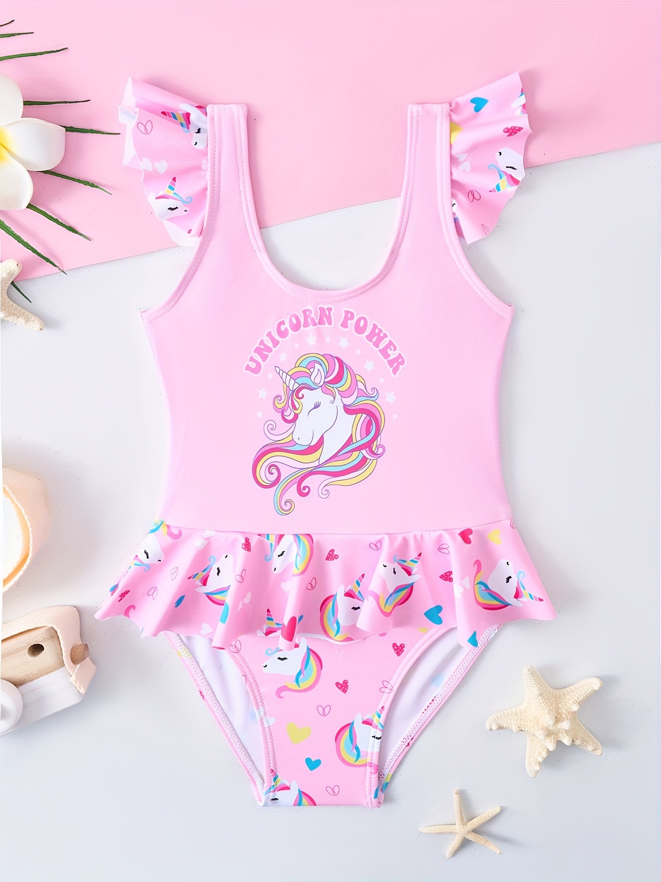 유럽과 미국의 새로운 어린이 수영복 소녀의 고급 유니콘 스타일 원피스 수영복 소녀 수영복