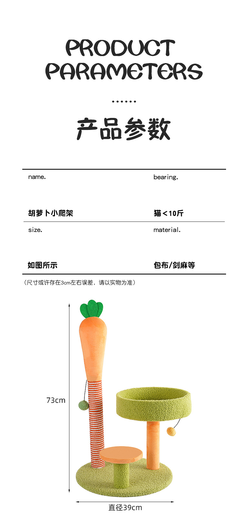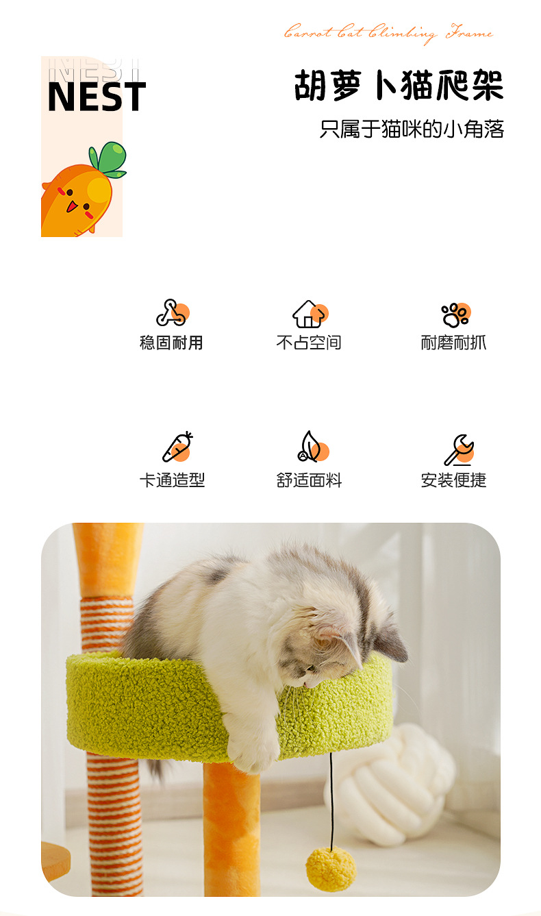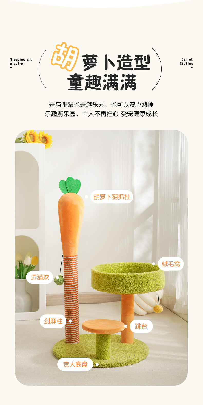 Meow Xianer 작은 고양이 등반 랙 귀여운 당근 창조적 인 모델링 등반 랙 고양이 잡아 열 고양이 둥지 통합 고양이 용품