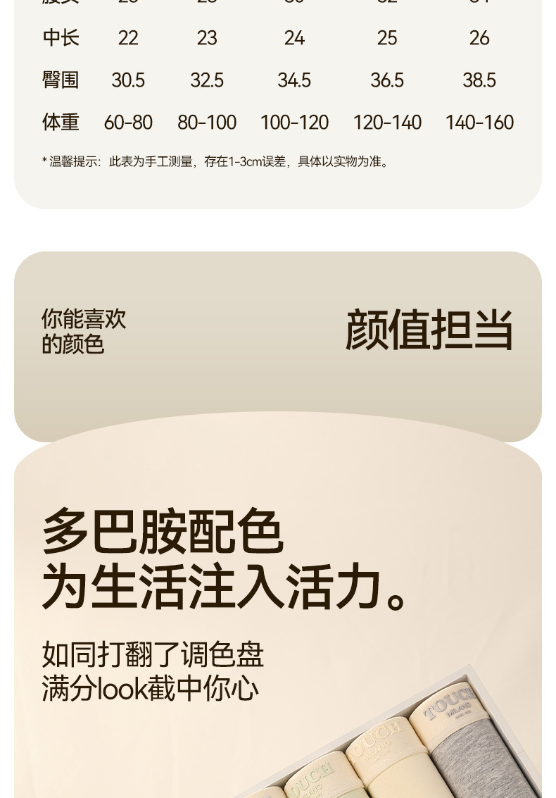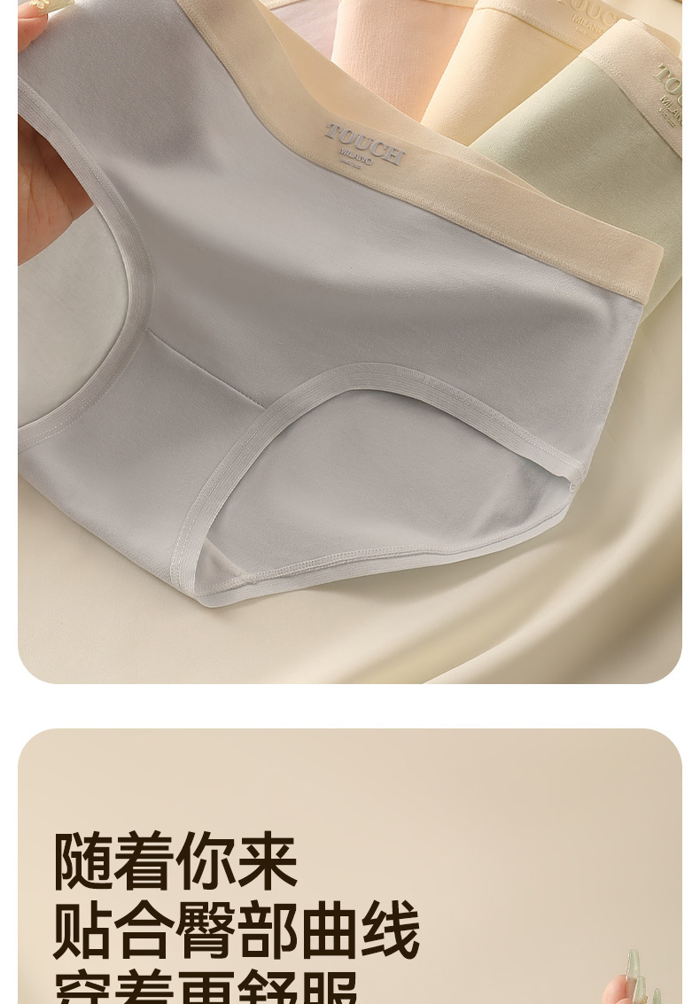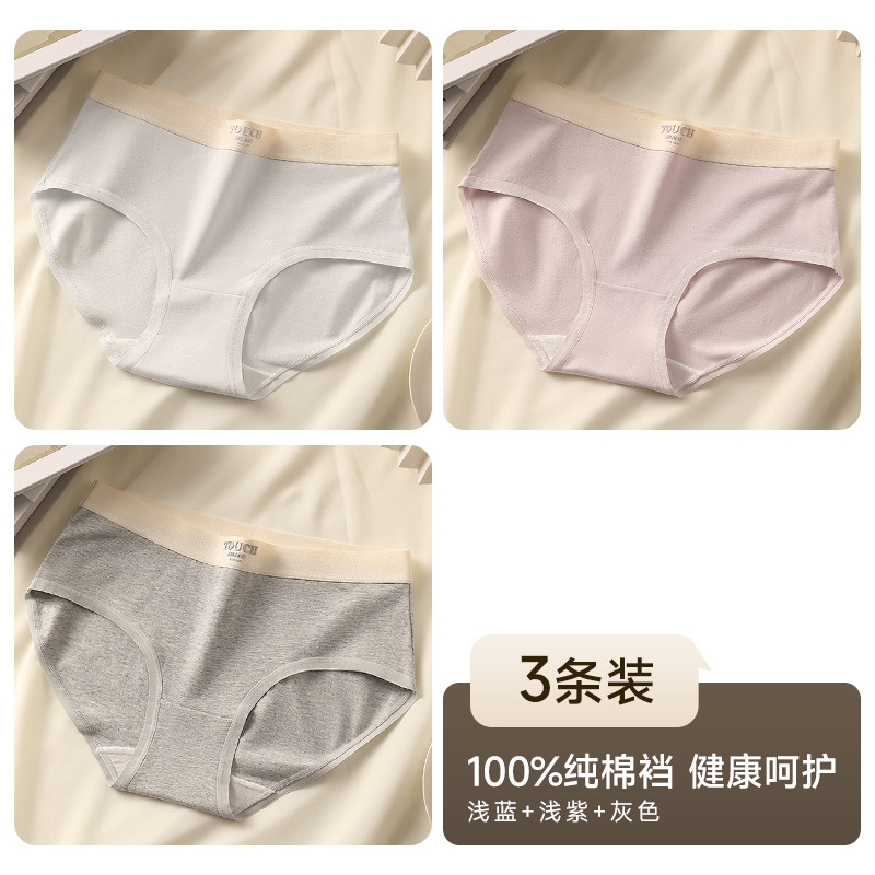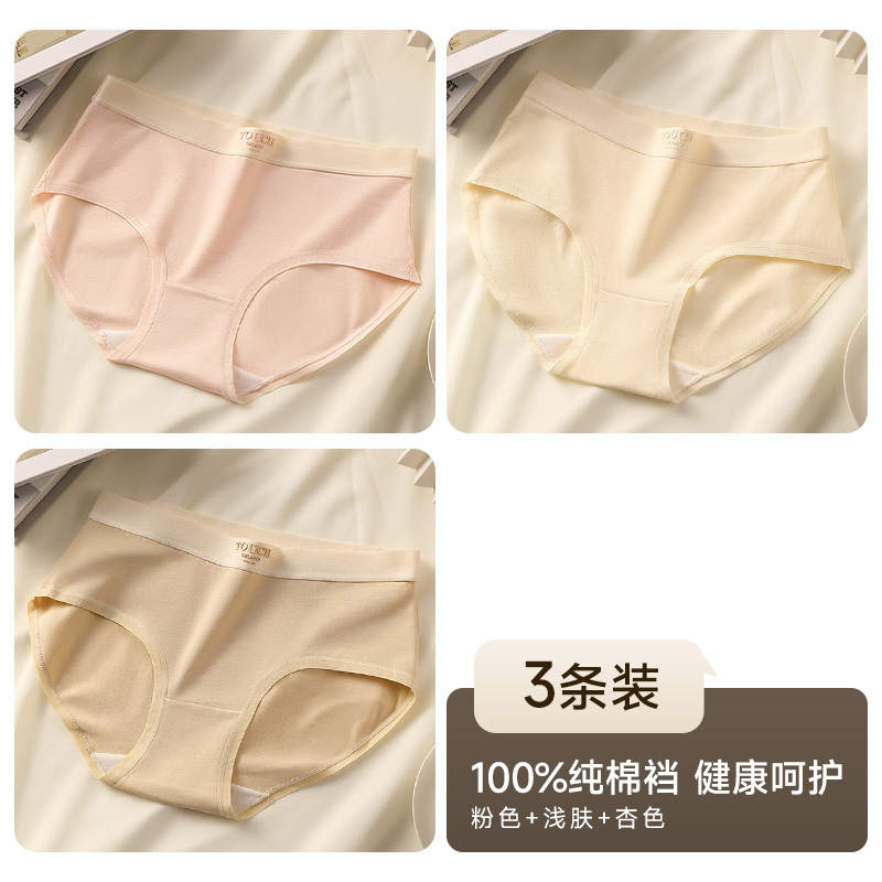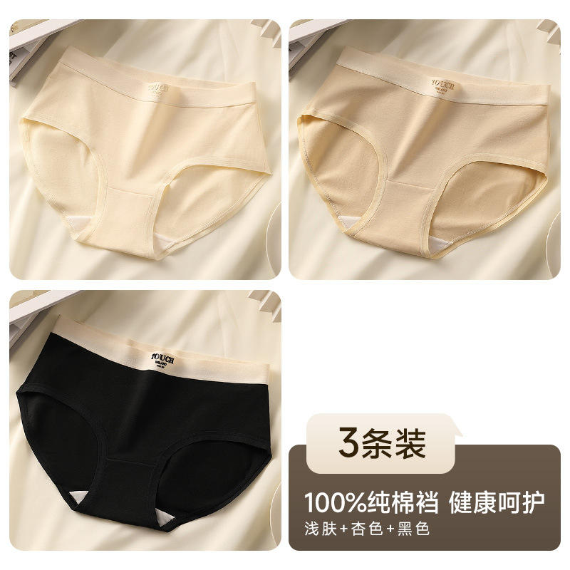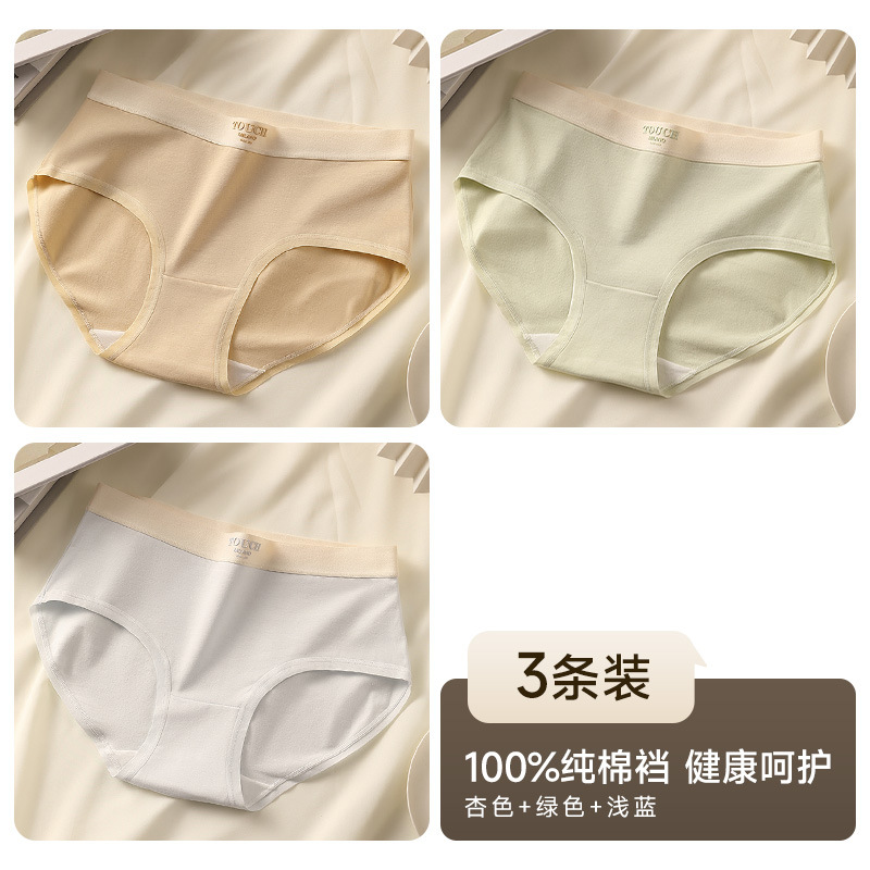 유자오린 여성용 순면 얇은 무봉제 누드감 중간 허리 통기성 소녀 삼각 팬티 3종 세트 여름용