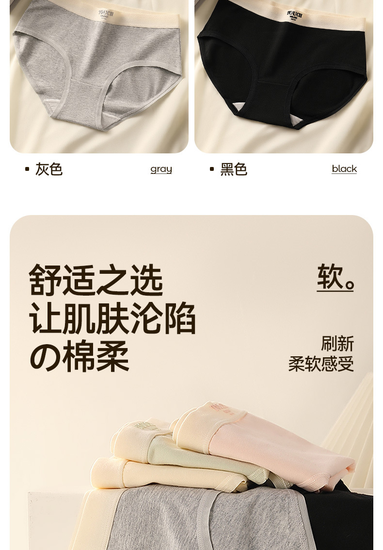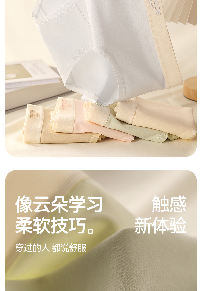 유자오린 여성용 순면 얇은 무봉제 누드감 중간 허리 통기성 소녀 삼각 팬티 3종 세트 여름용스토어 가기