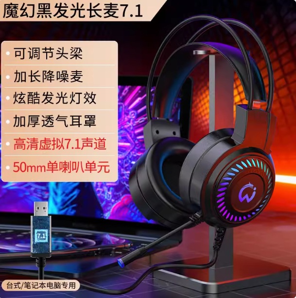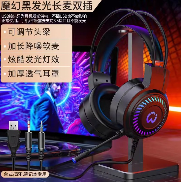 • 검정색 3.5 듀얼 플러그 + USB 플러그(야광) 데스크탑 컴퓨터/노트북에 적합