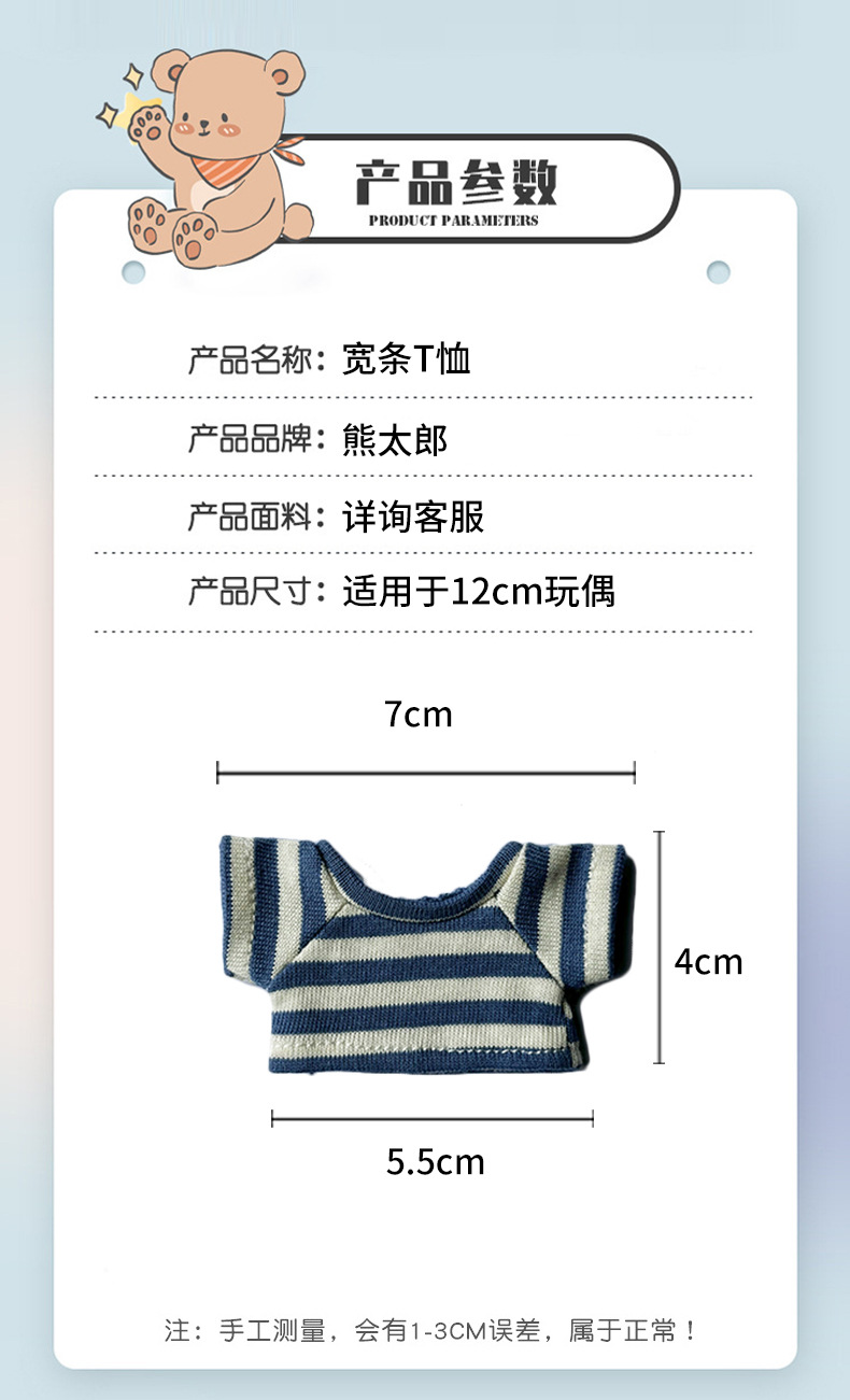 Y040 와이드 티셔츠 벨 트위스트 바 인형 곰 의류 짧은 소매 로고 드레싱 곰 봉제 장난감스토어 가기