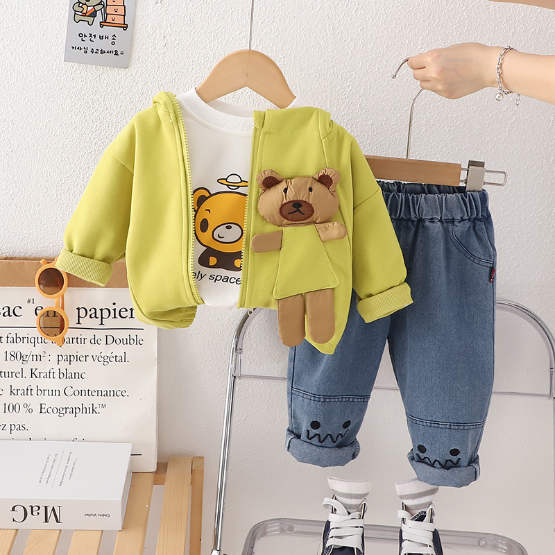 남성 아동복 만화 가을 세트 2024 새로운 후드 어린이 아기 오토바이 의류 3 종 세트 제조 업체 도매스토어 가기