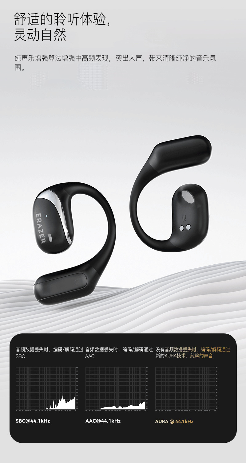 标准5.4蓝牙通信技术,双边立体音质,精选14.2mmPUK新型复合音膜,无线传播距离约10米,音乐时间约8小时(70%音量),充电时间约2小时,电池循环寿命充放电循环约300次,耳机电池容量50mAh,充电仓电池容量600mAh,多功能触摸按键,一键切换游戏/音乐模式,播放/暂停,上/下曲,音量大/小等多功能。