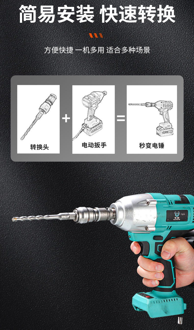 새로운 전기 렌치 변환 전기 해머 사각 핸들 4 피트 원형 핸들 2 홈 드릴 범용 조인트 충격 드릴 도구스토어 가기