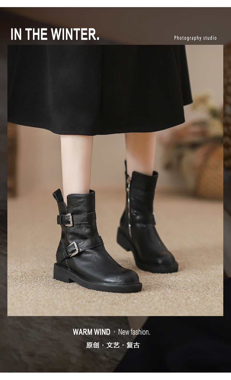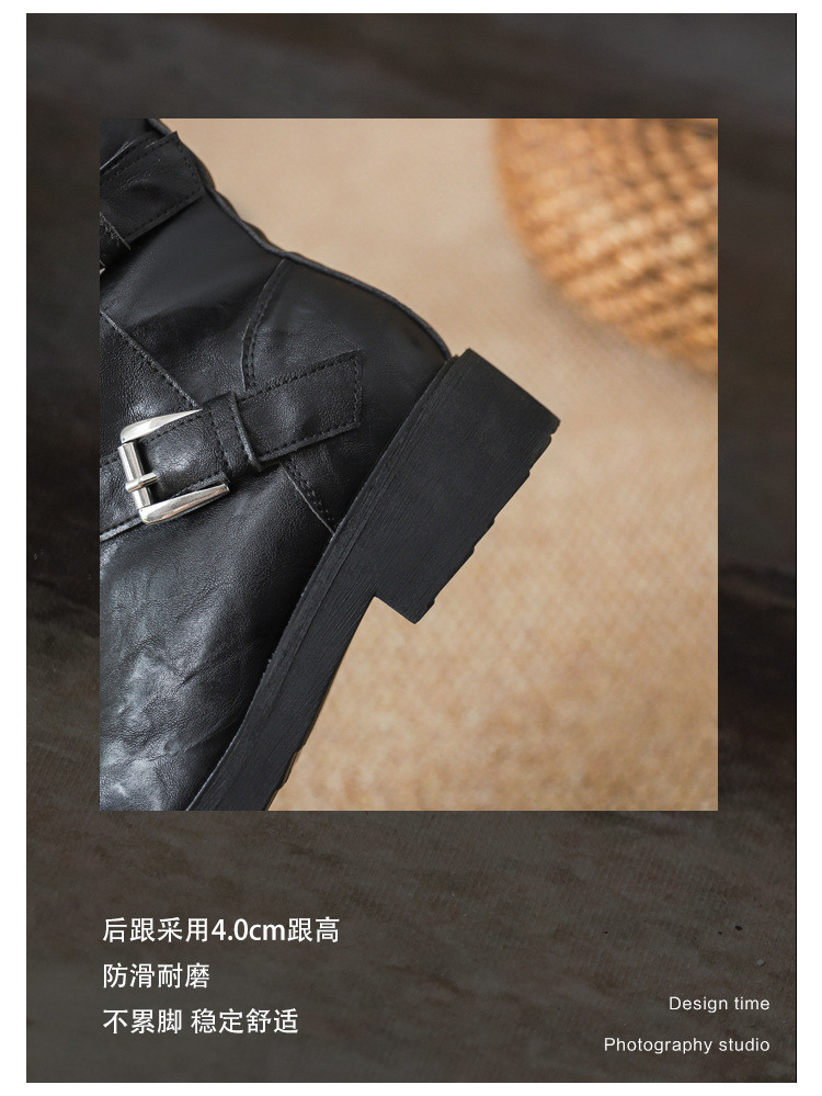 소가죽 버전 ~ 가을 신작 마틴 부츠 벨트 버튼 블랙 슈즈 여성 첼시 부츠 미드 튜브 두꺼운 밑창 부츠스토어 가기