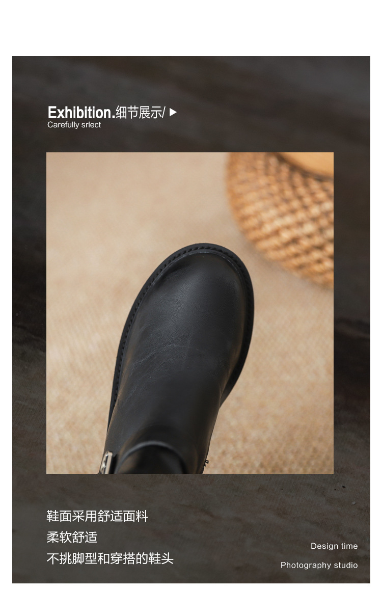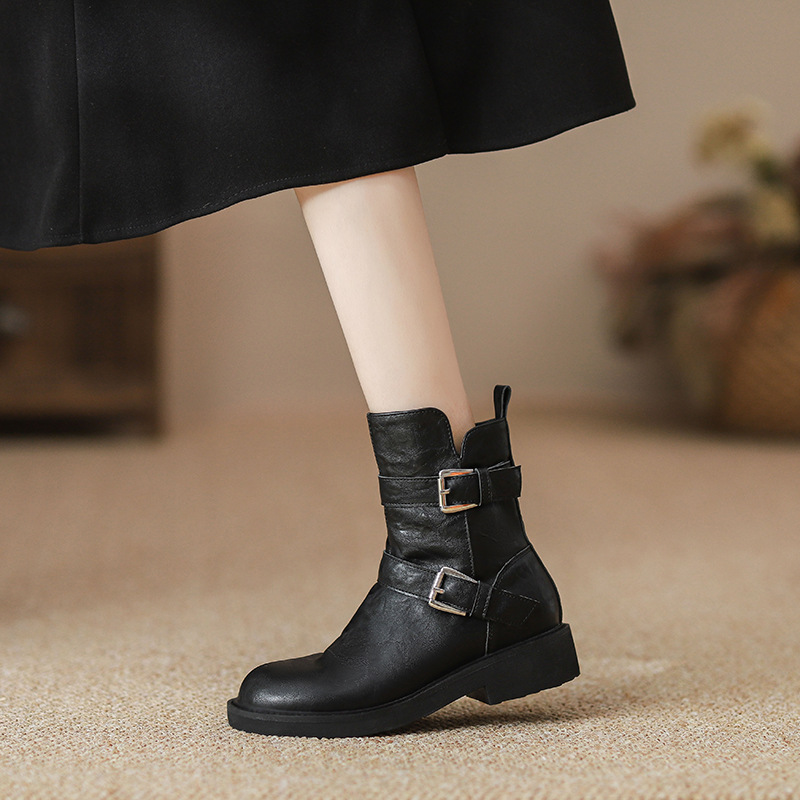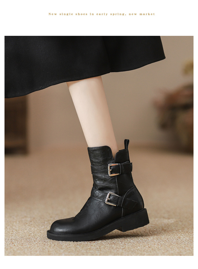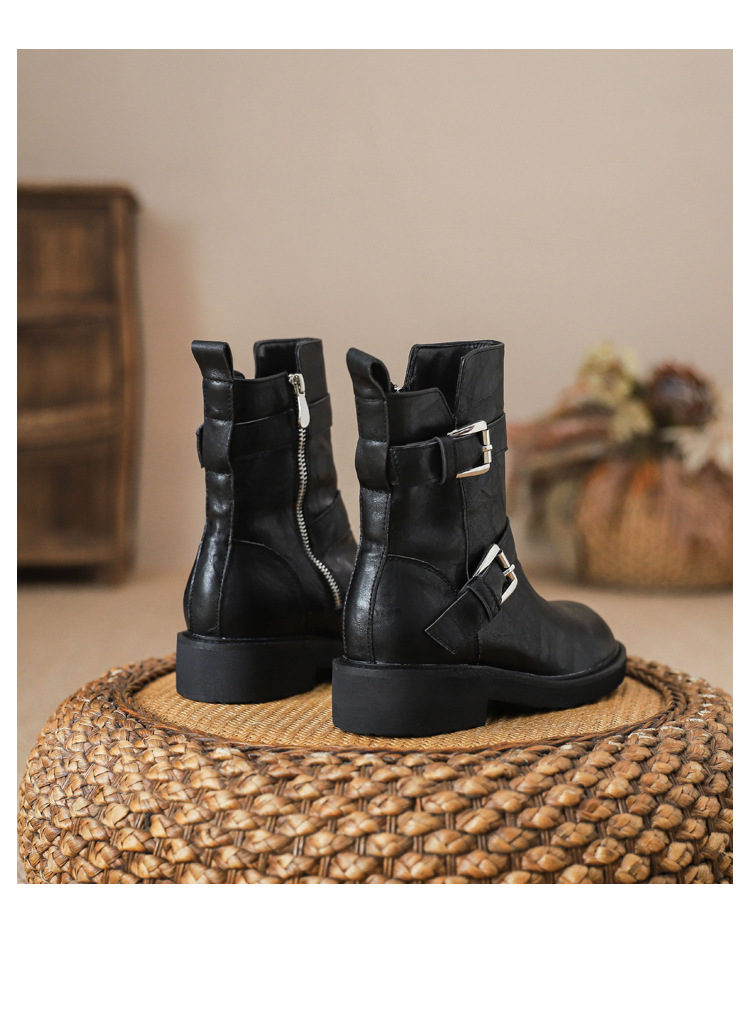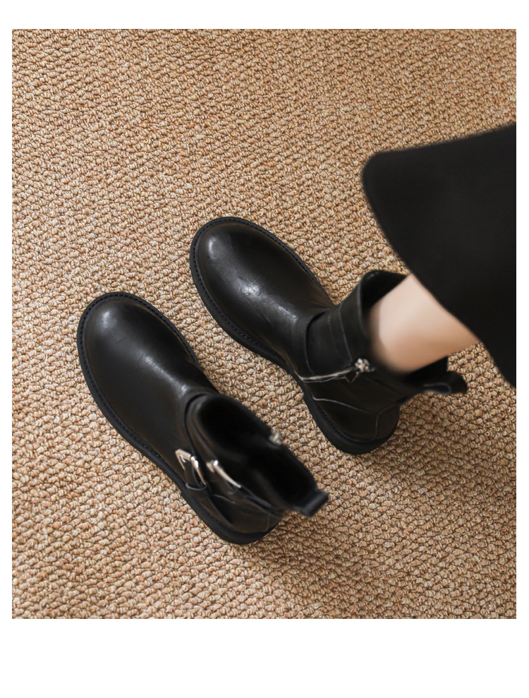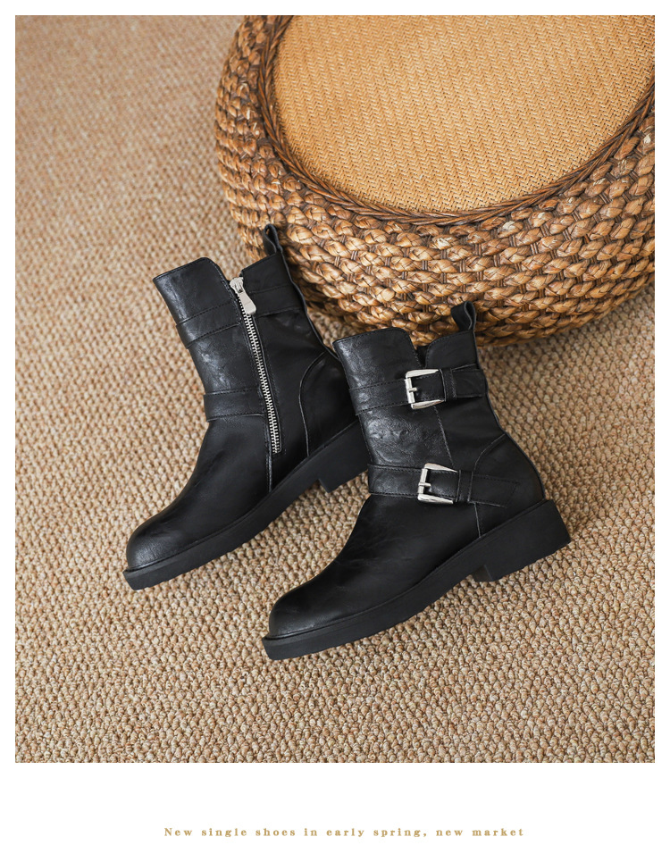 소가죽 버전 ~ 가을 신작 마틴 부츠 벨트 버튼 블랙 슈즈 여성 첼시 부츠 미드 튜브 두꺼운 밑창 부츠