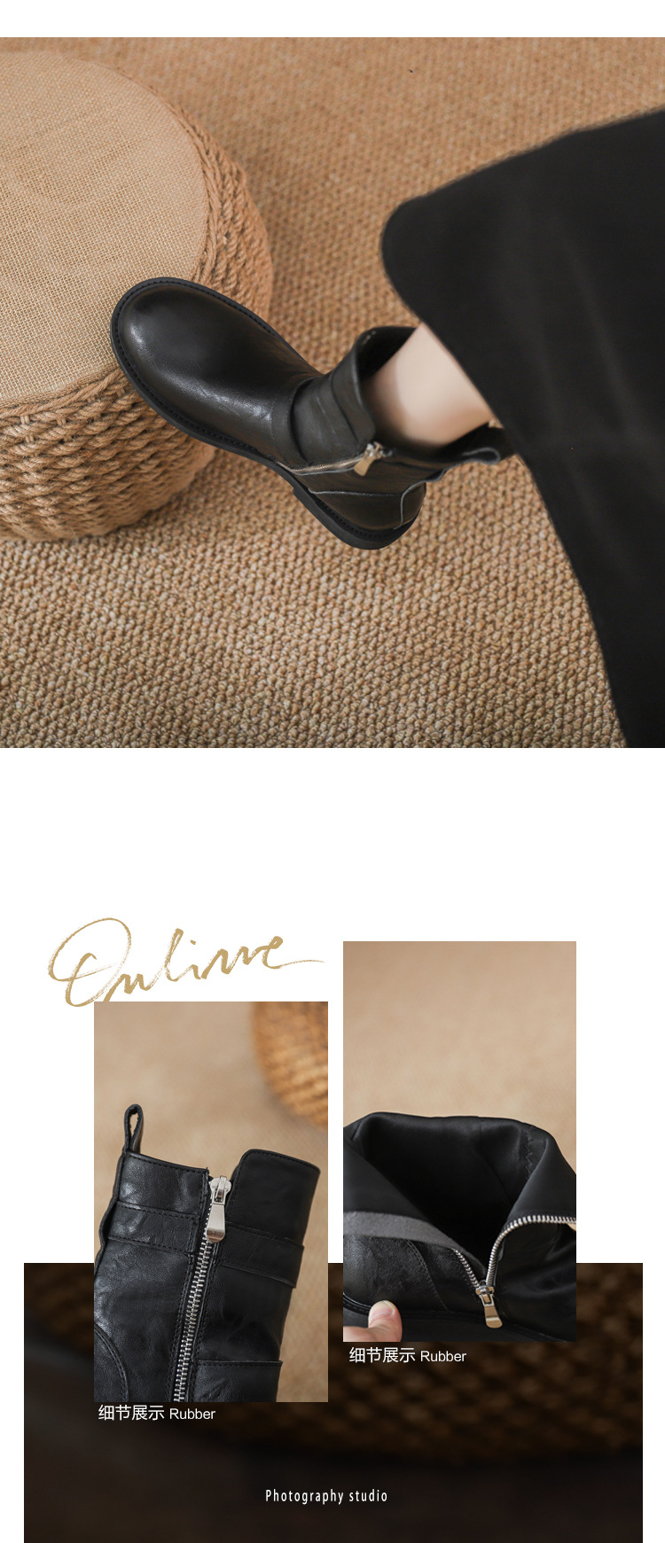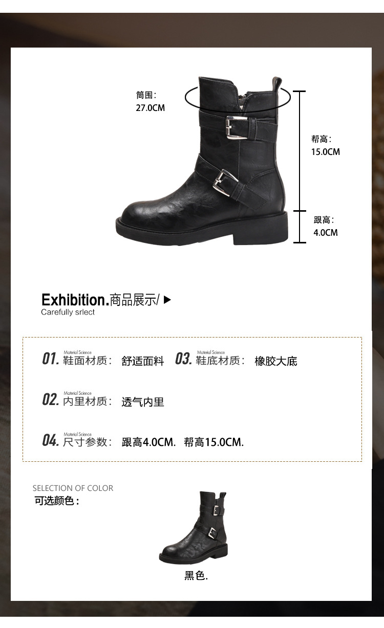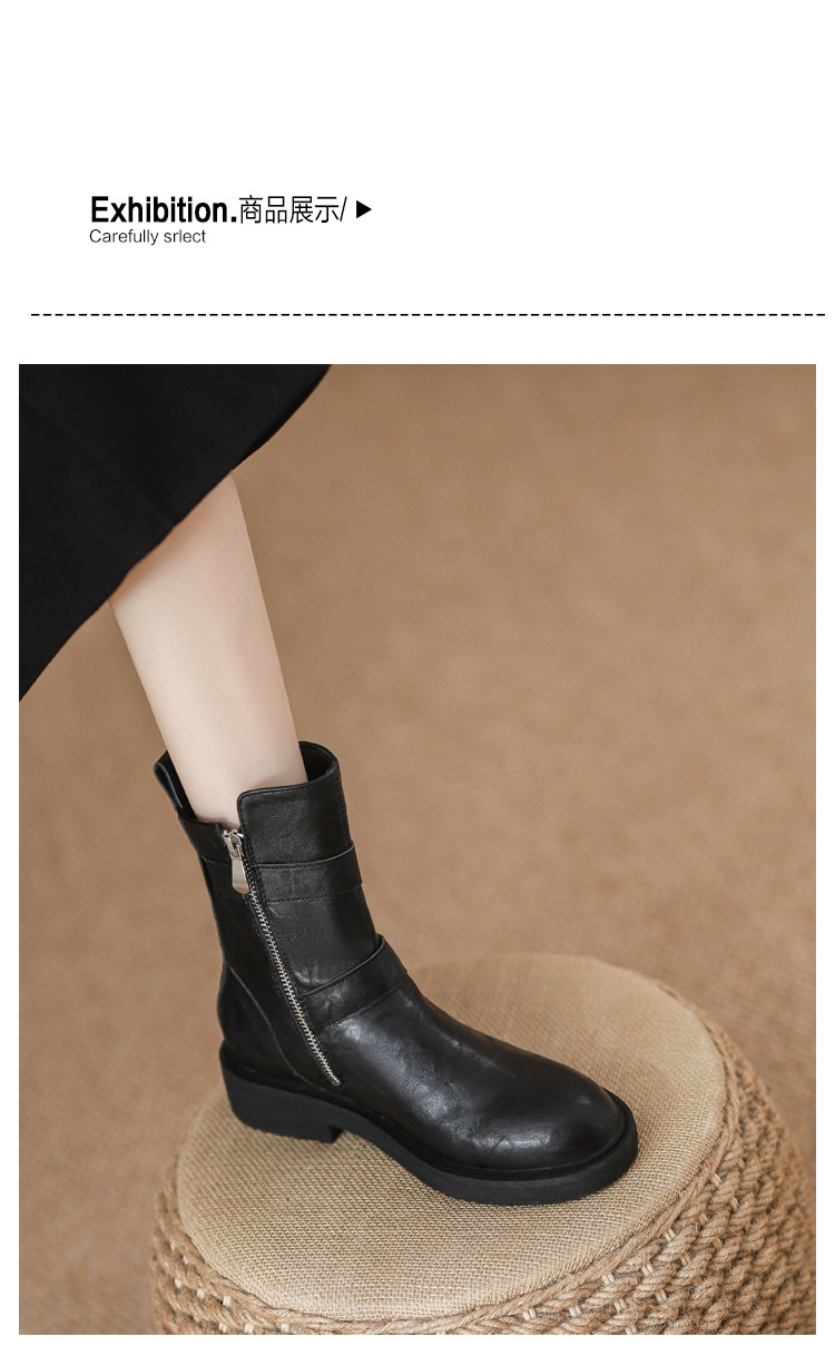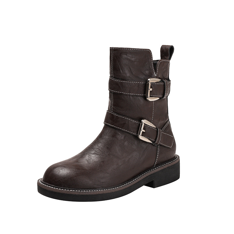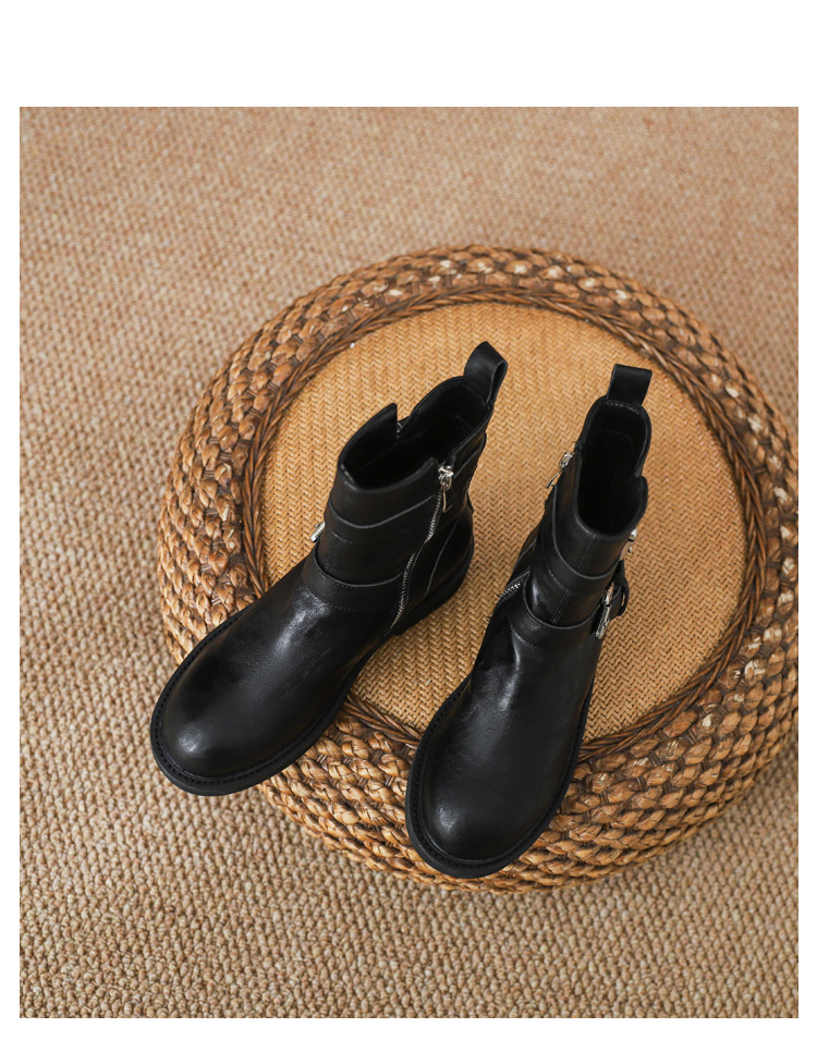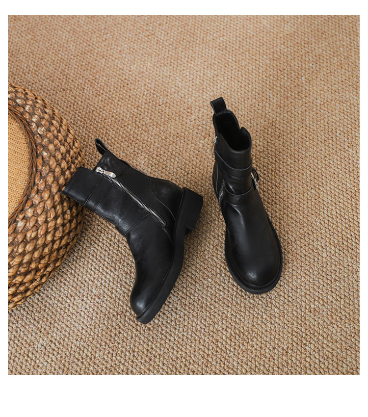 소가죽 버전 ~ 가을 신작 마틴 부츠 벨트 버튼 블랙 슈즈 여성 첼시 부츠 미드 튜브 두꺼운 밑창 부츠