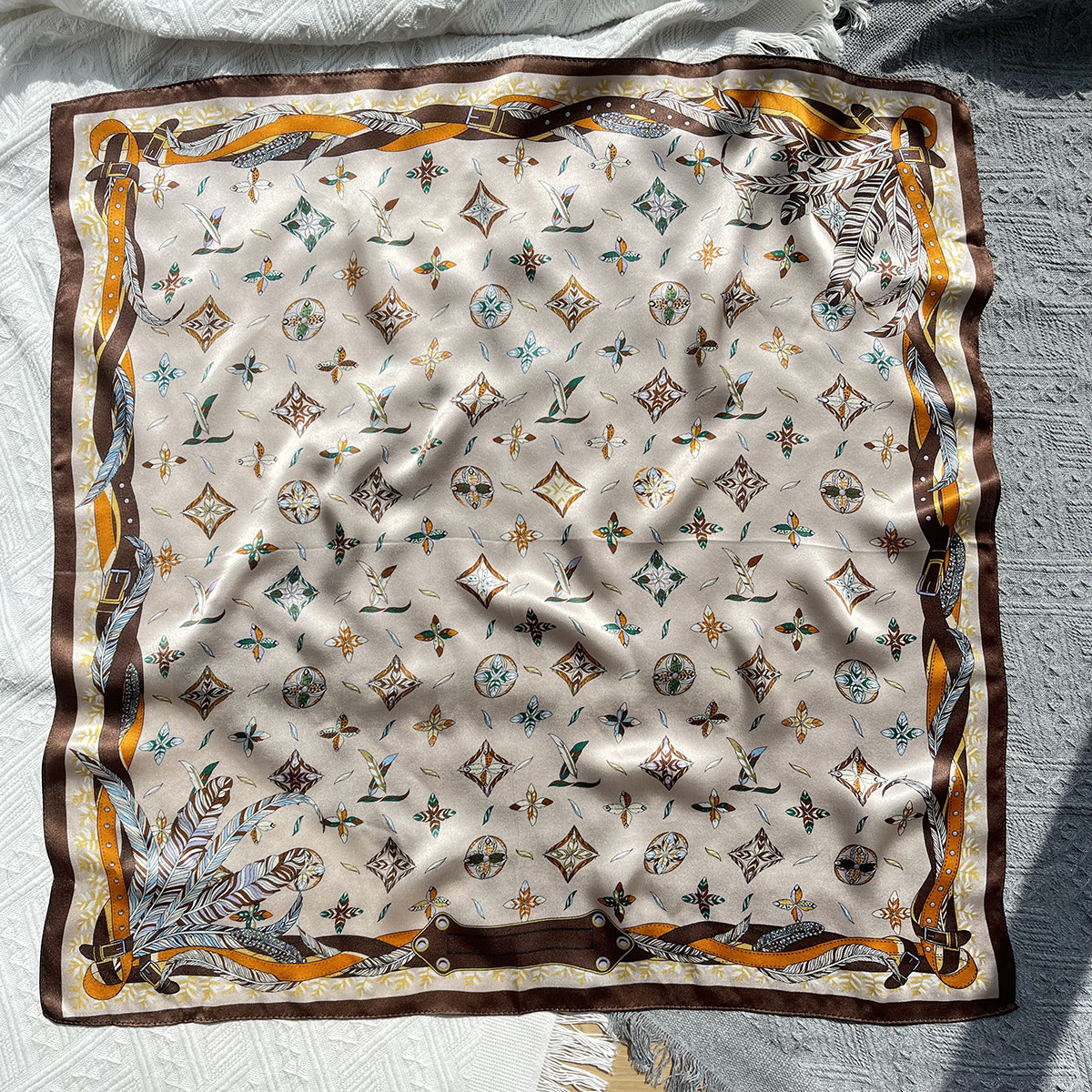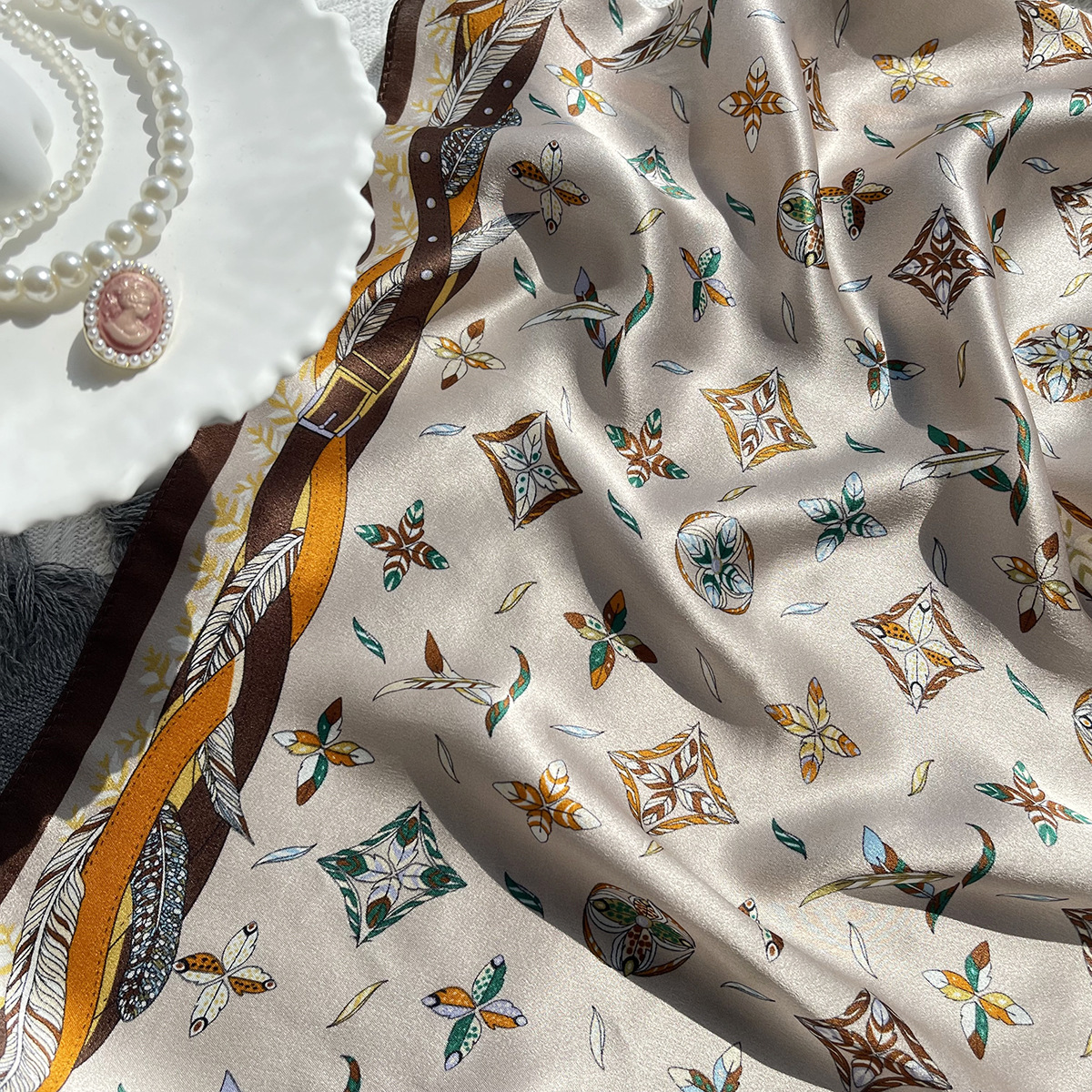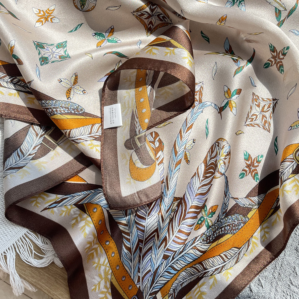 인도 깃털 70 실크 크레페 새틴 스카프 가을과 겨울 하이 엔드 100% 멀 베리 실크 고급 올 매치 절묘한