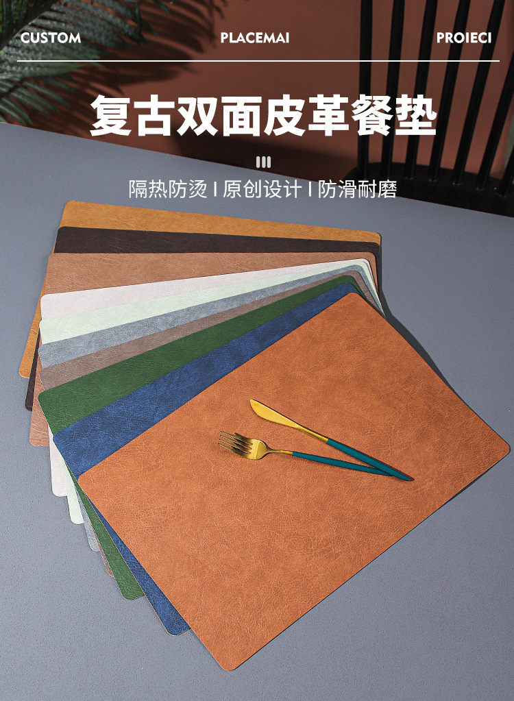 친환경 PVC 스퀘어 가죽 플레이스 방수 더블 레이어 Cowhide 패턴 웨스턴 플레이스 매트 호텔 단열 매트 식탁 매트 홈