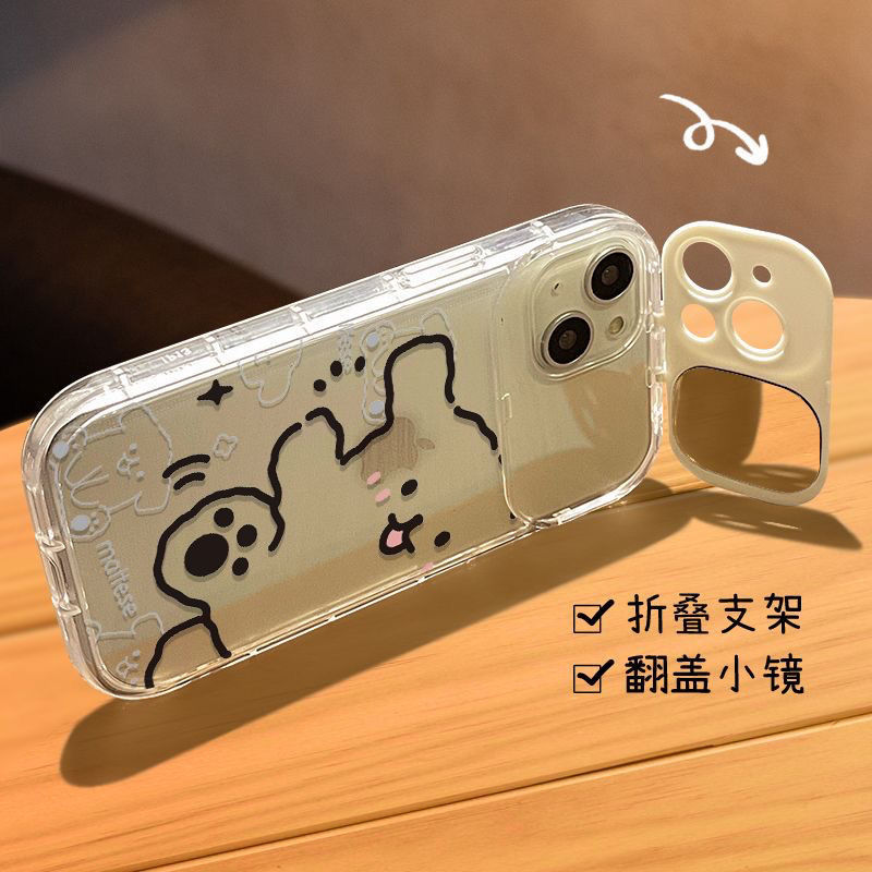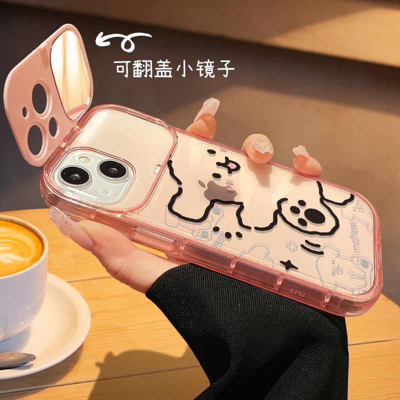 • 翻盖镜子-透粉-【线条小狗镜面】