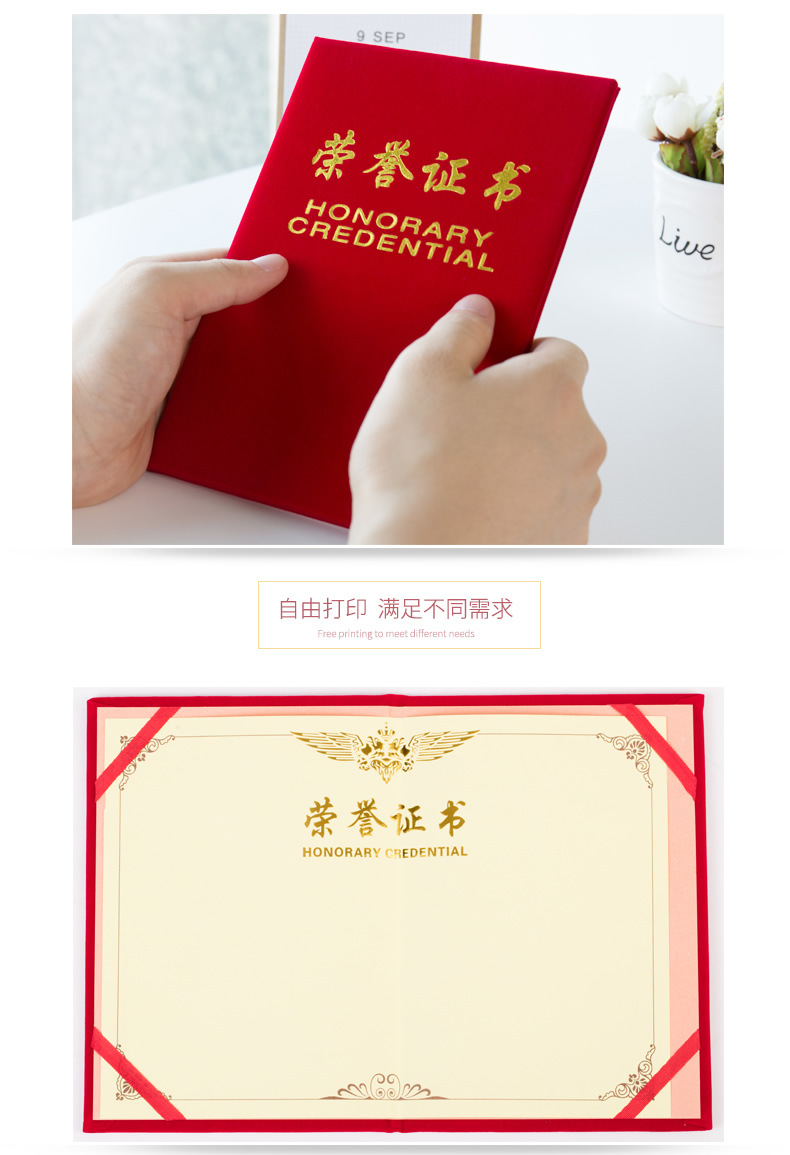 델리 명예 인증서 북 스웨이드 커버 상 인증서 영광 시리즈 학생 인증서스토어 가기