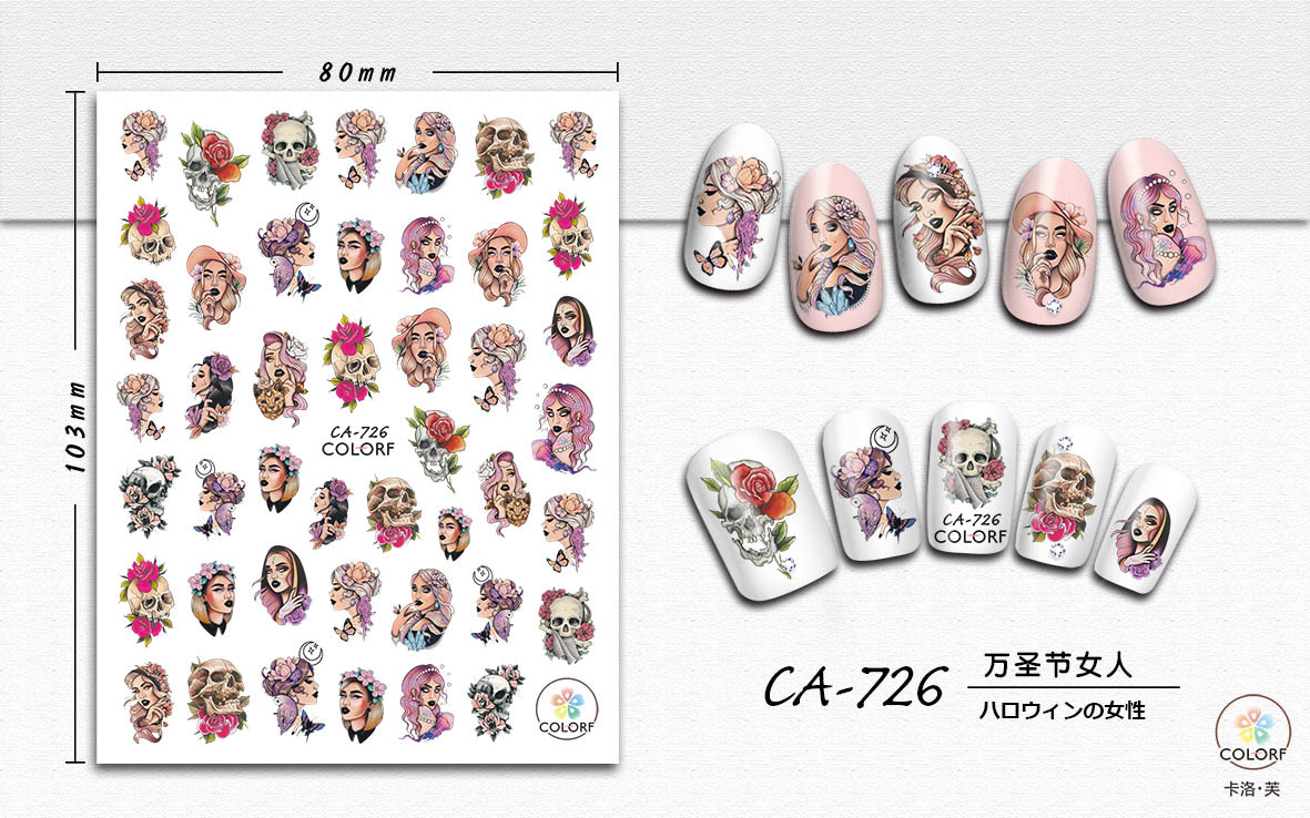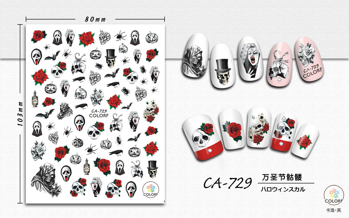 국경 간 대외 무역 인기 CA 할로윈 네일 스티커 해골 유령 복고풍 핫 판매 네일 스티커 도매 전체 스티커