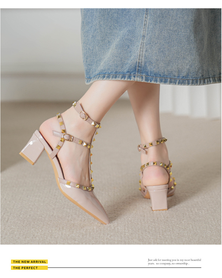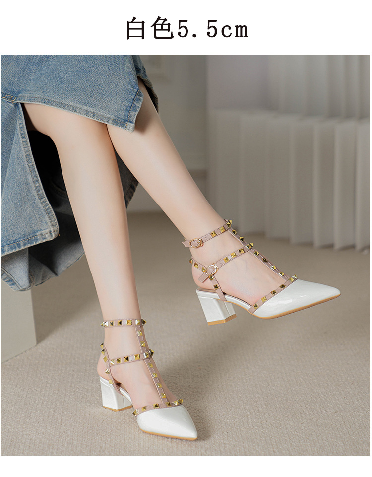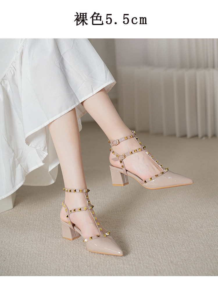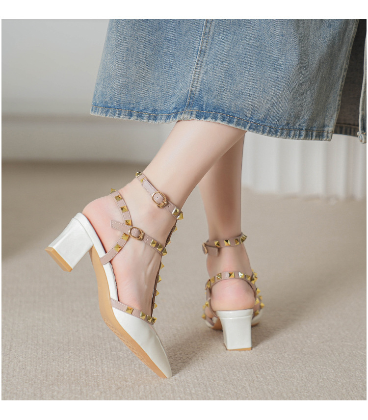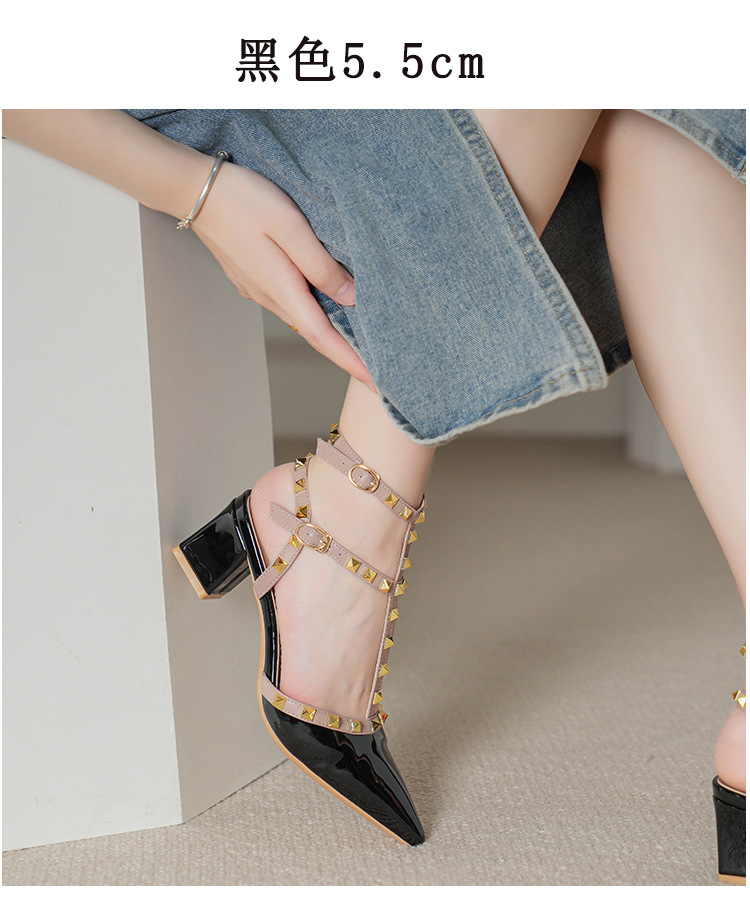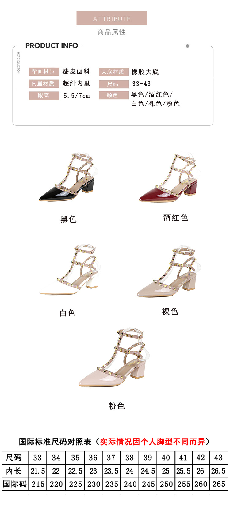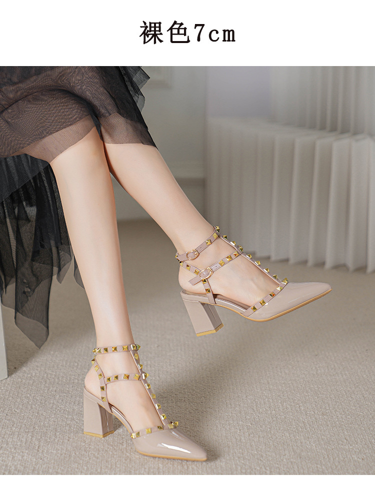 528-2 리벳 하이힐 플러스 사이즈 뾰족한 신발 여성의 봄과 여름 새로운 로마 샌들 우아한 바오터우 신발