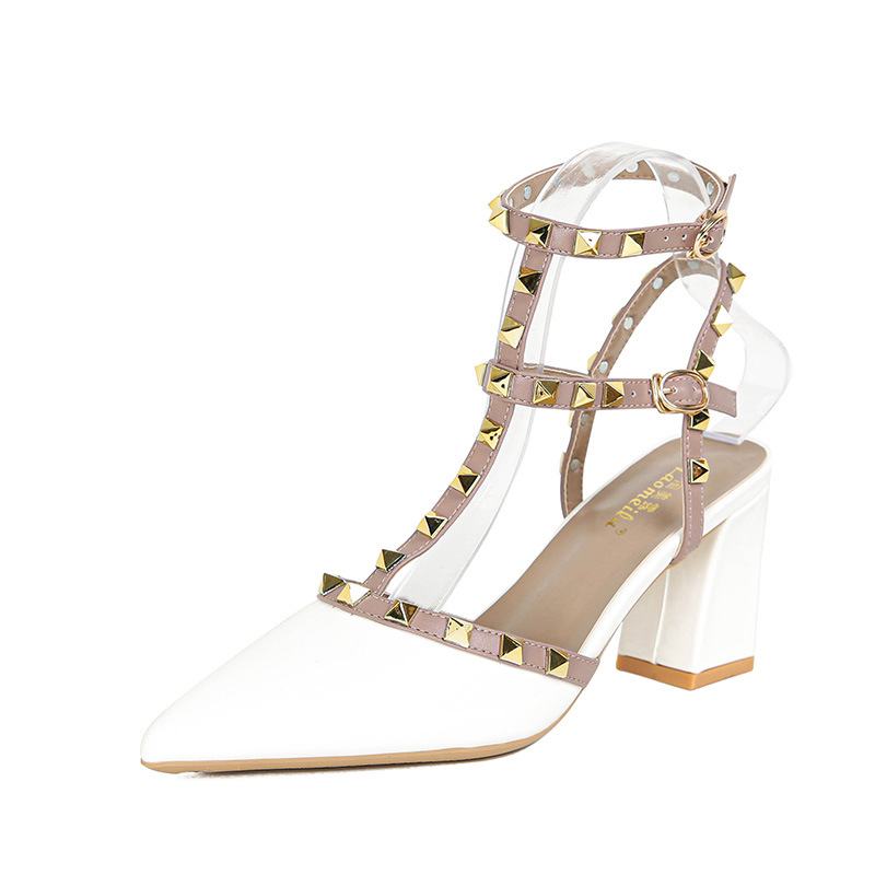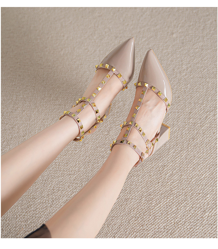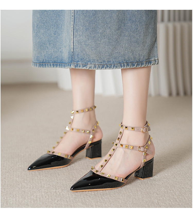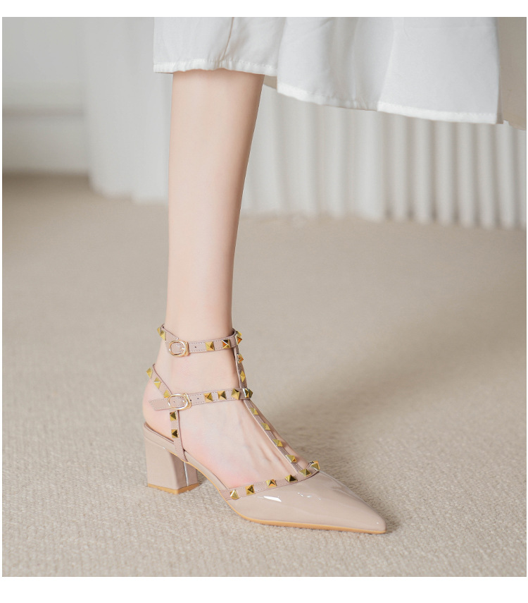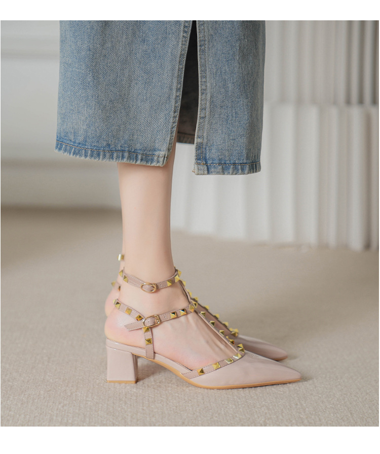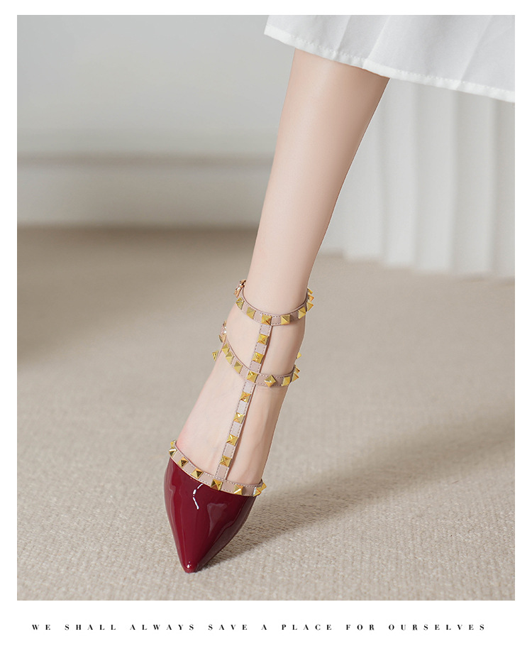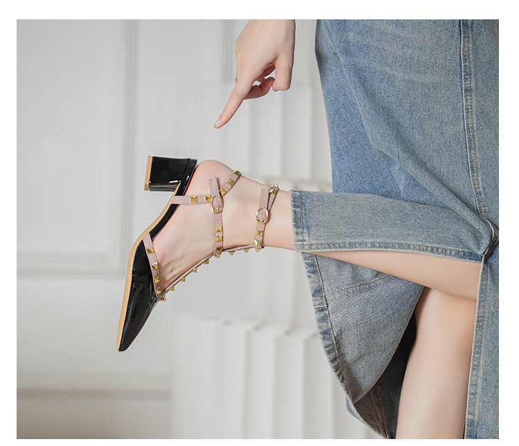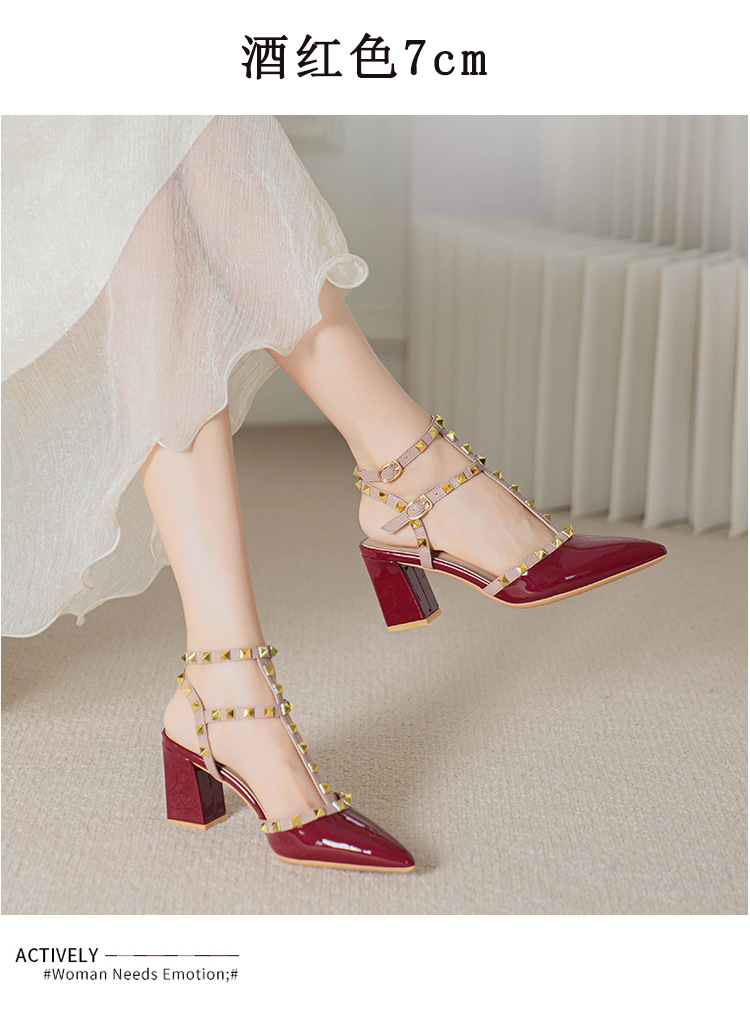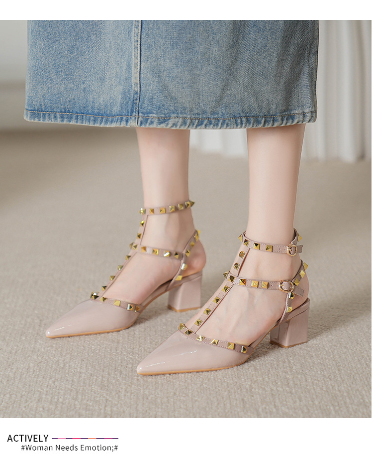 528-2 리벳 하이힐 플러스 사이즈 뾰족한 신발 여성의 봄과 여름 새로운 로마 샌들 우아한 바오터우 신발