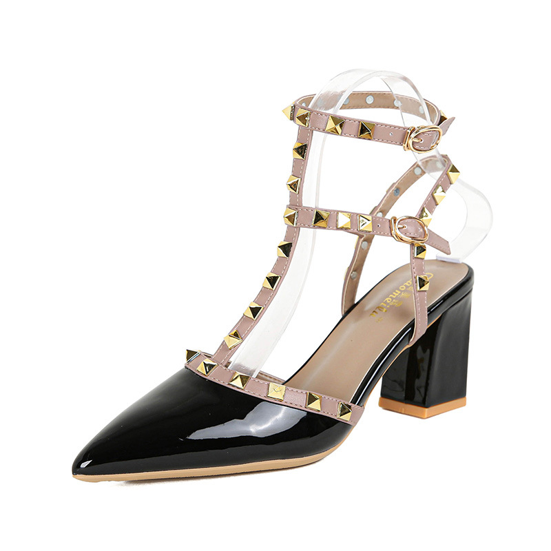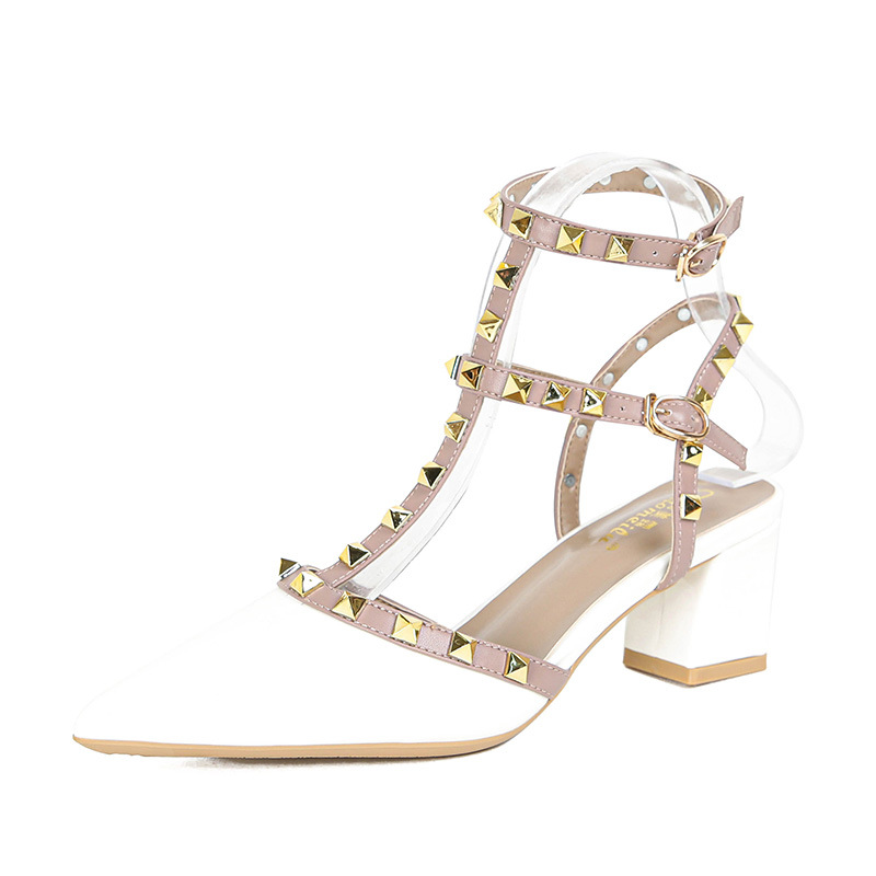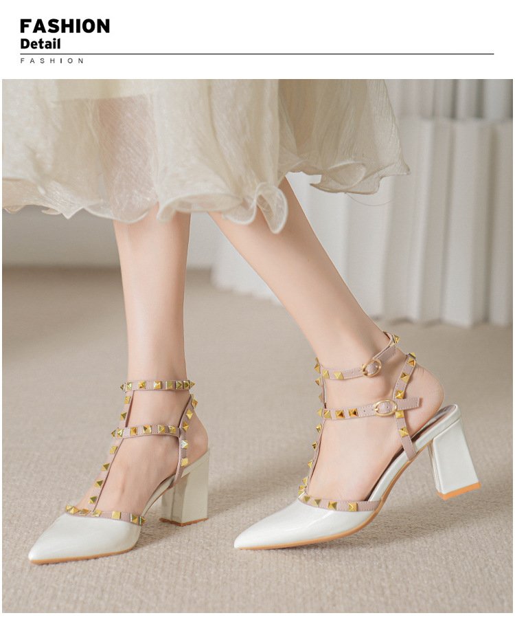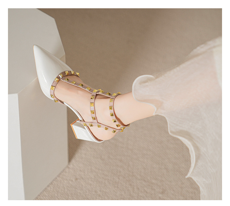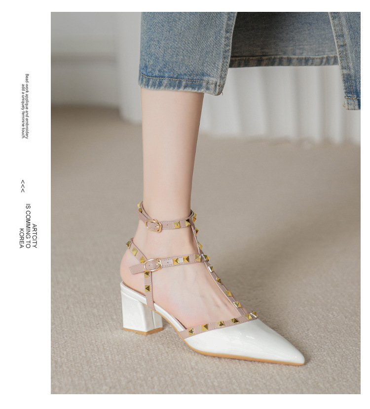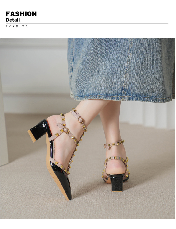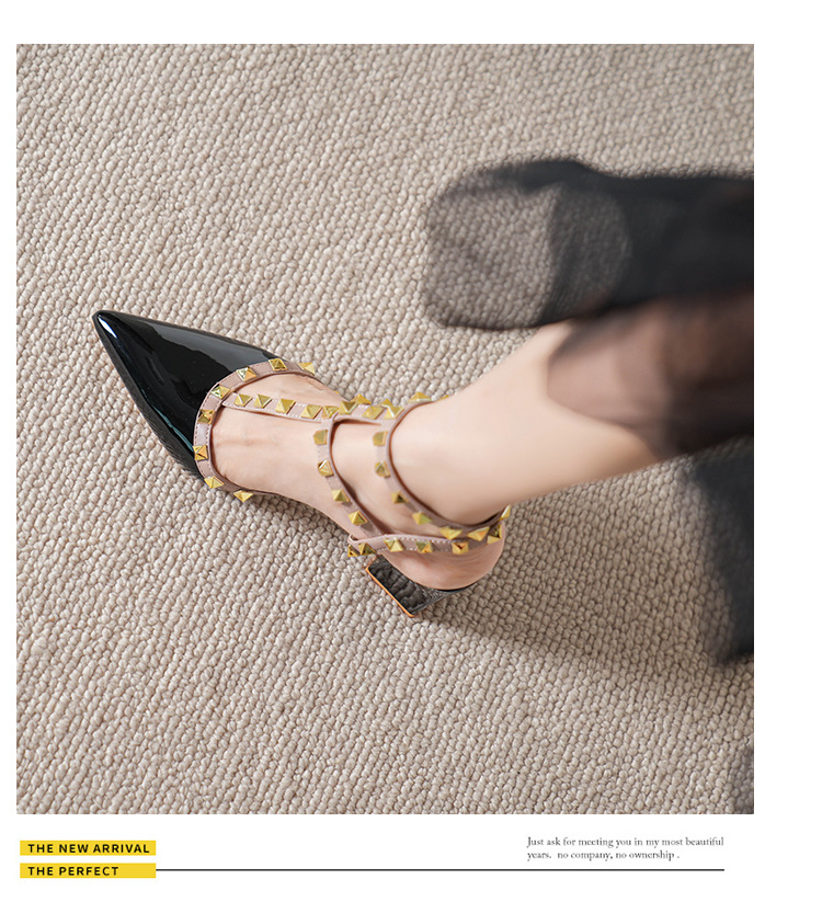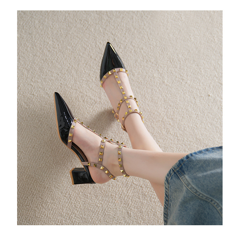 528-2 리벳 하이힐 플러스 사이즈 뾰족한 신발 여성의 봄과 여름 새로운 로마 샌들 우아한 바오터우 신발