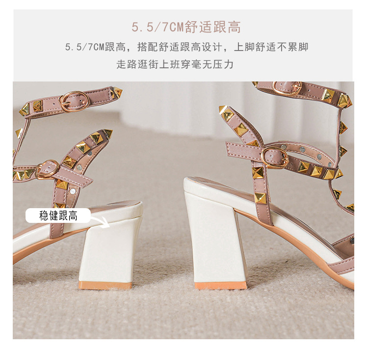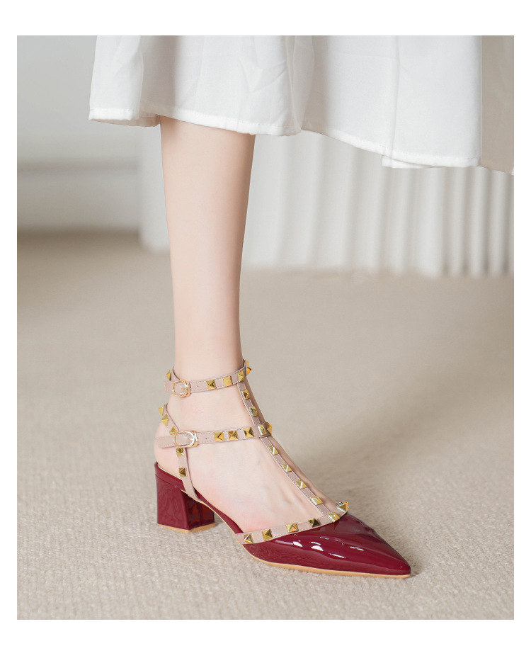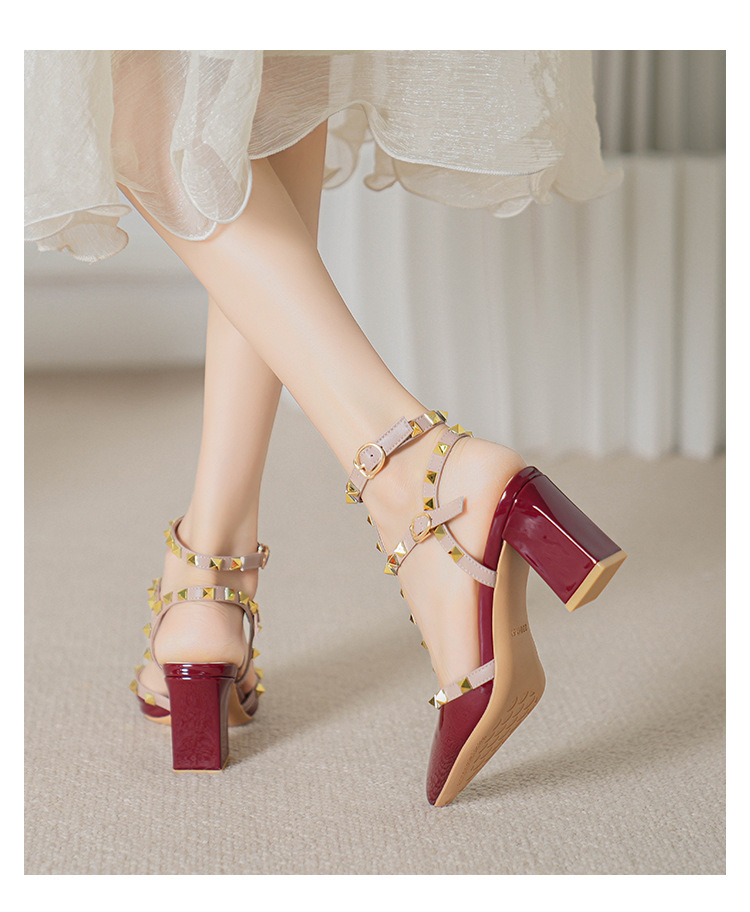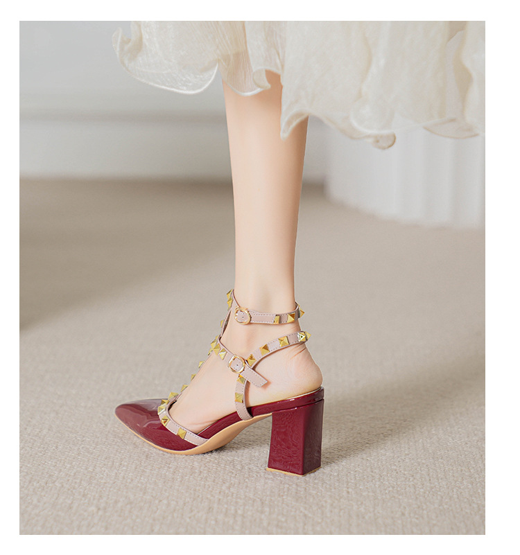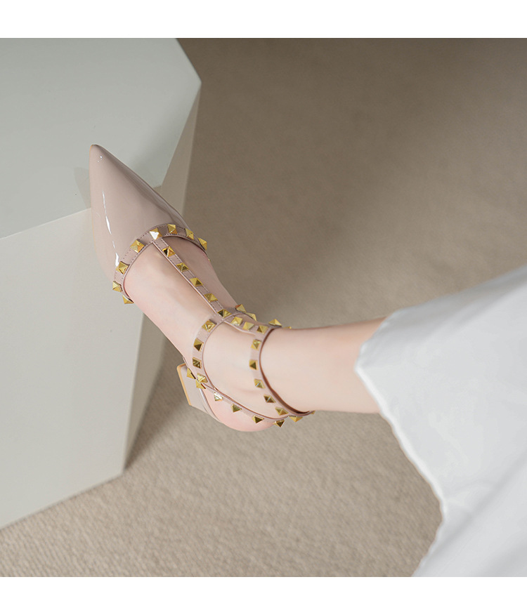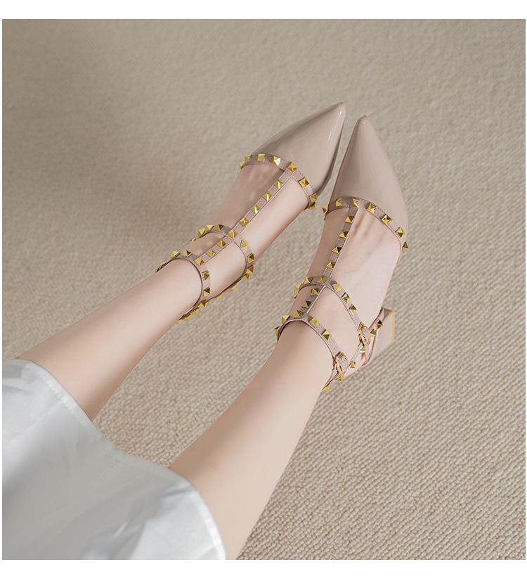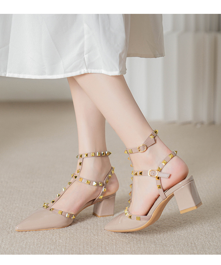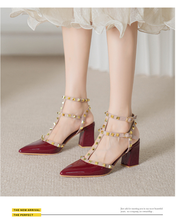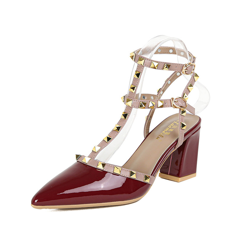 528-2 리벳 하이힐 플러스 사이즈 뾰족한 신발 여성의 봄과 여름 새로운 로마 샌들 우아한 바오터우 신발